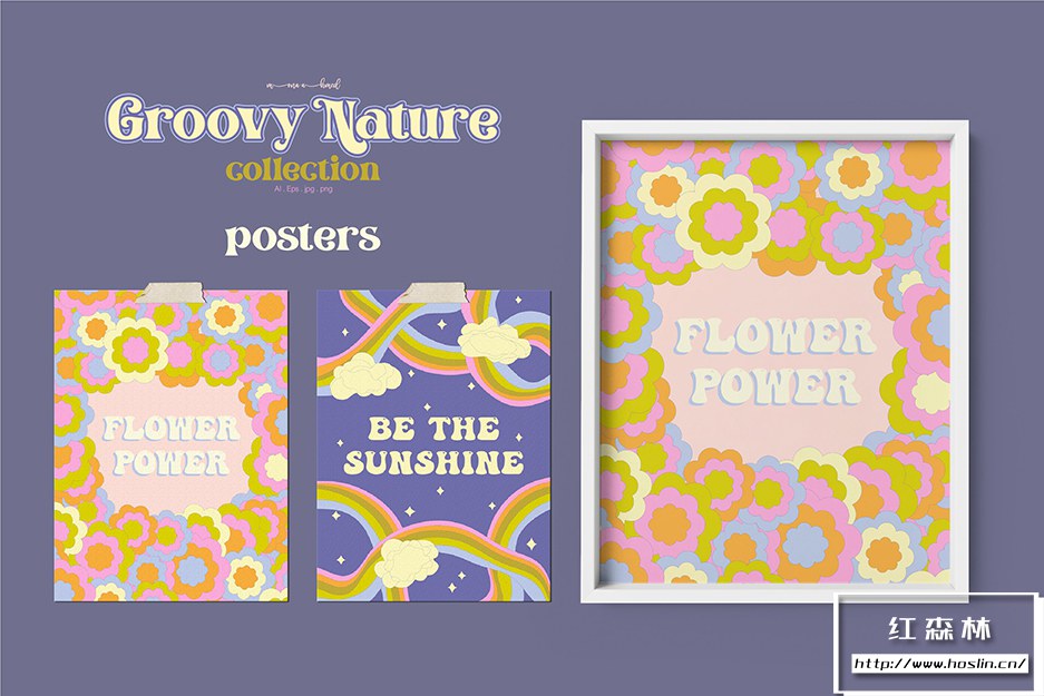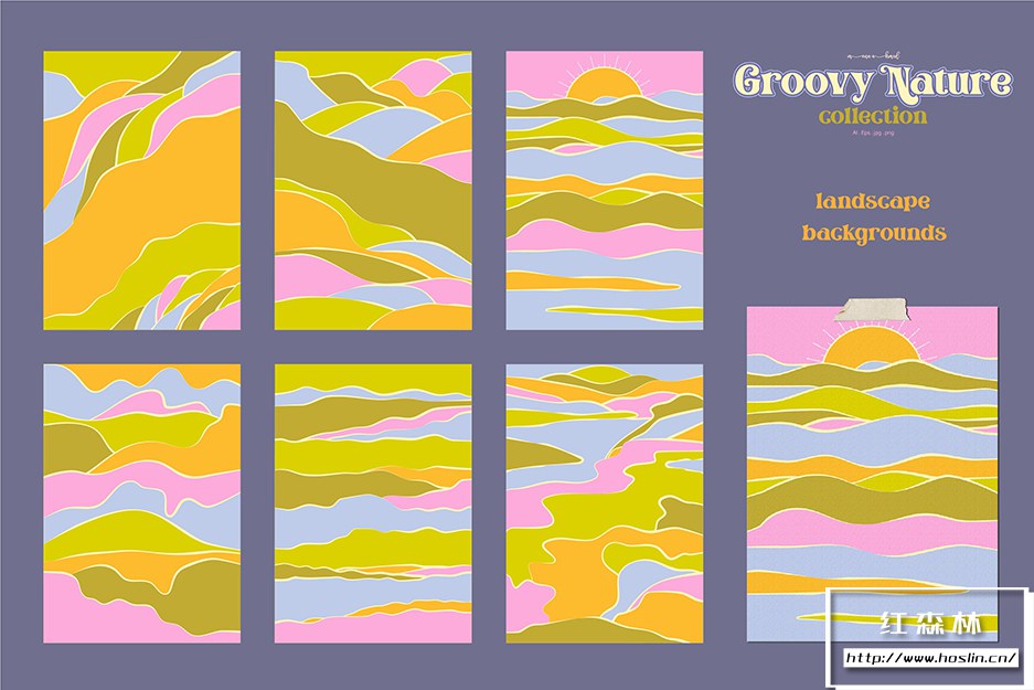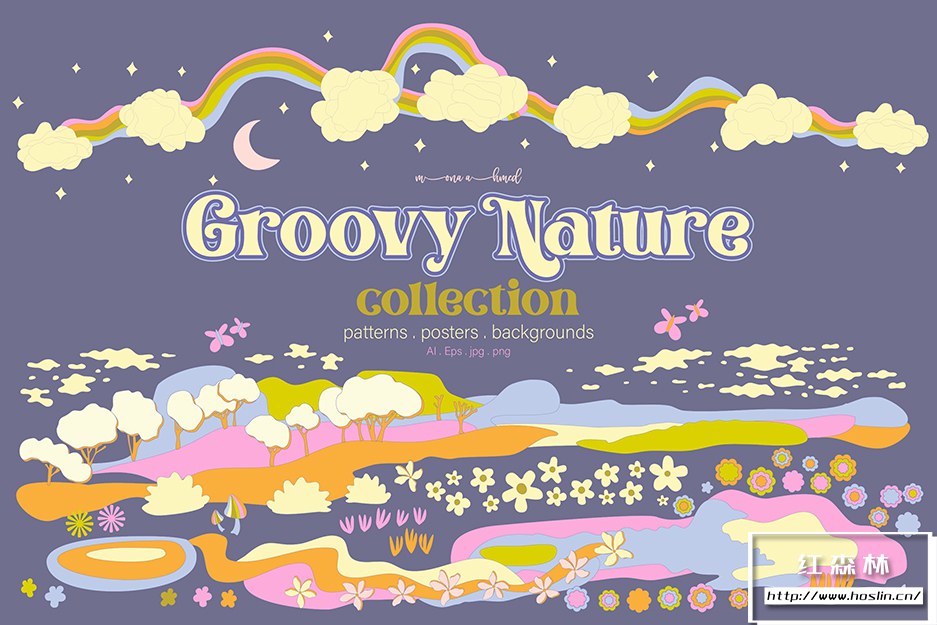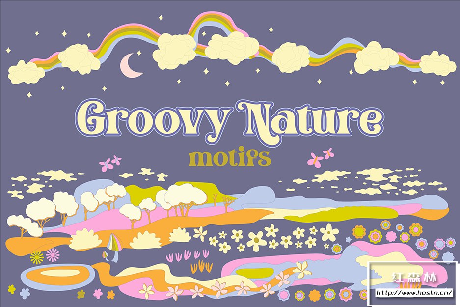 Groovy 自然系列是一系列图案、海报、风景背景和所有自然主题的集合,以一种时髦的外观来享受时髦的氛围。在品牌、包装、面料、家居装饰或任何类型的创意项目中使用该系列,为其增添时髦感。
