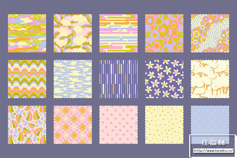 - 15 种无缝图案(剪裁未剪裁、剪裁),(Ai.Eps 10.Jpg 7200x7200px@300dpi.Png 7200×7200@300dpi 透明背景)。