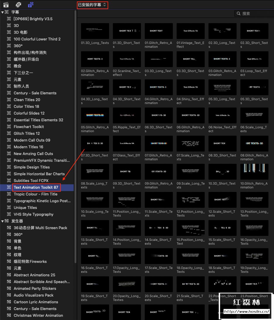 Text Animation Toolkit 拥有87个长文本、短文本、故障、复古等文本动作预设,支持中文输入,还可以修改大小、位置、旋转和透明度,纹理,模糊,描边,发光等。默认1920×1080(可调整大小),自适应时间(您可以更改 IN/OUT 动画长度),您也可以添加 Neon FX 并自定义其他参数。包含视频教程。