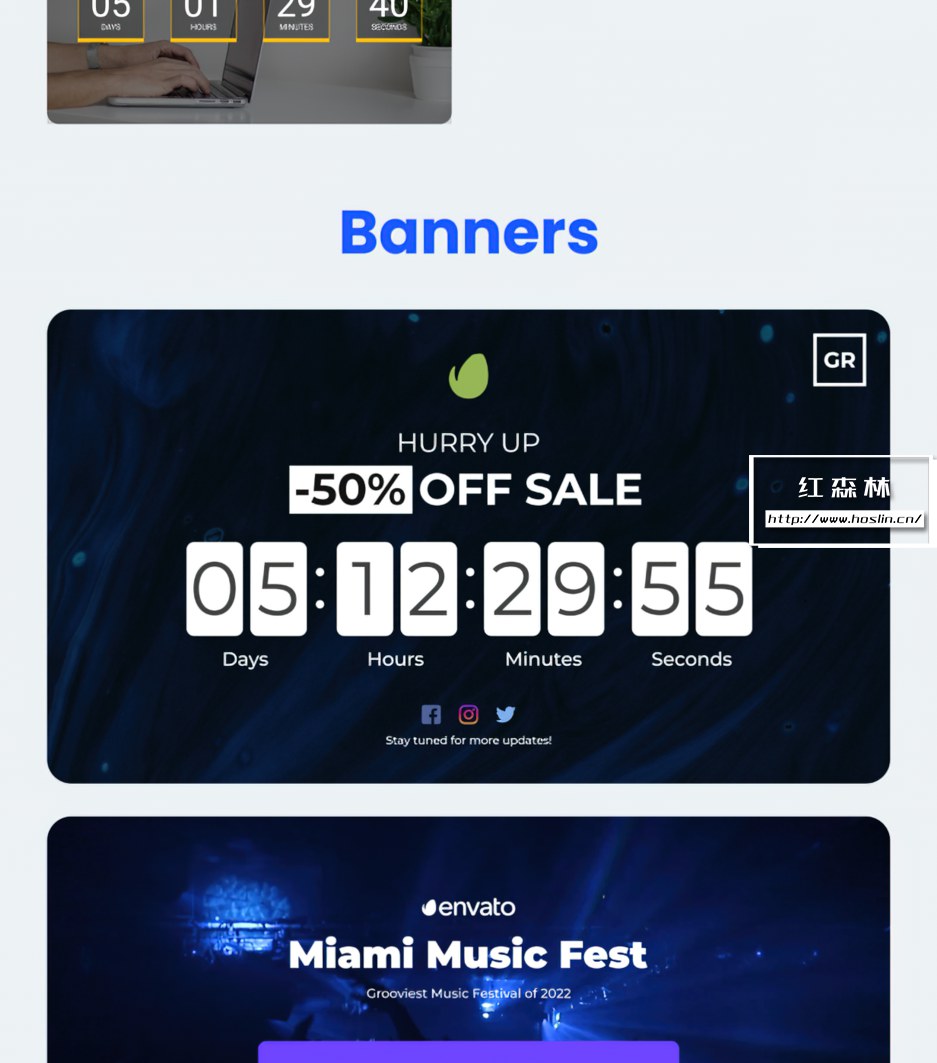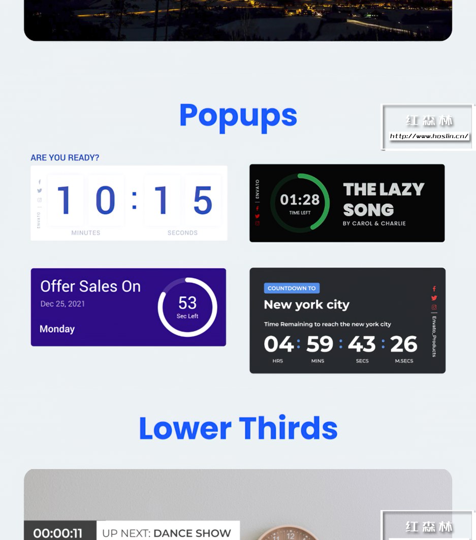 包含很棒的倒计时/倒计时计时器、横幅、宽计时器、计时器字幕条、沙钟、简单计时器、数字计时器和弹出窗口。每个计时器都有所有的时间格式。初学者可以轻松自定义此模板包,其中包含视频教程、PDF 帮助文件和快速技术支持。