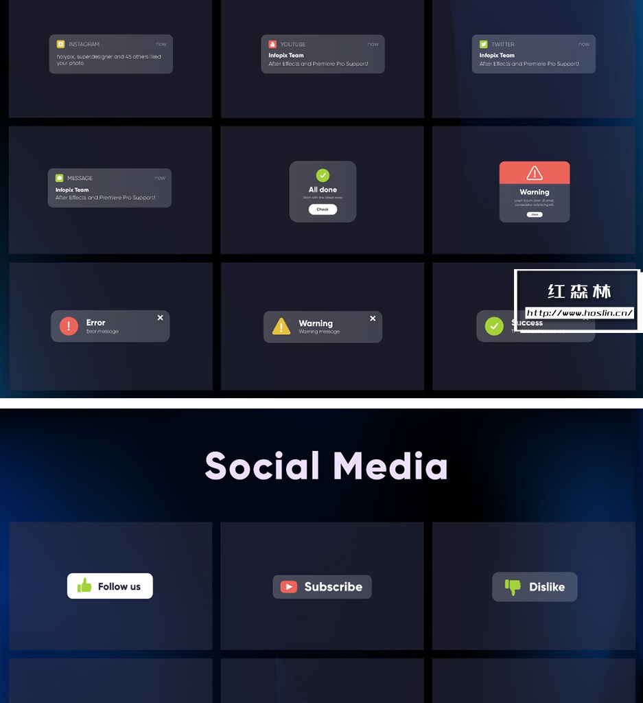 适用于任何视频的100多种时尚元素。该模板易于使用,只需将其拖放到您的项目中即可。您可以自定义任何元素,调整大小、位置、颜色等等。包括:19个通知动画,11张笑脸,38个社交媒体图形包装,10种短信弹窗,38个小工具等。