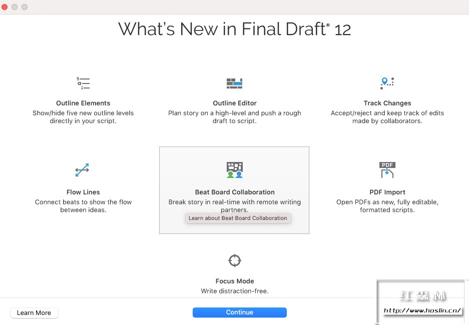 Final Draft是一款专业的剧本编辑工具,拥有强大的文字处理与专业的剧本格式,支持场景视图、导航器、分页、索引卡等功能,并拥有海量的模板,可以用于编写电影剧本,电视对话、舞台剧和新媒体,是娱乐界顶尖的编剧,剧作家,电视编剧和制作人的日常使用工具。新版本的final draft 功能更加强大,增加了预写工具可以提供故事的高级视图;增加了新节拍板和结构点,可以让作者更好的整理想法和结构;改进的页眉和页脚,现在可以自动将您的文件名添加到您的页眉和页脚。软件也支持协作功能,您可以和其他朋友在这款软件合作,可以同时编辑剧本,非常适合需要写作的朋友使用。
