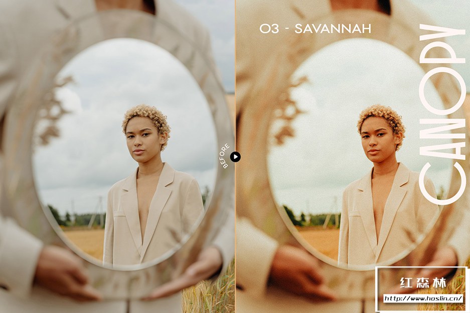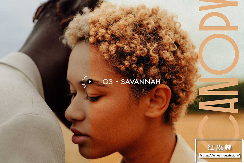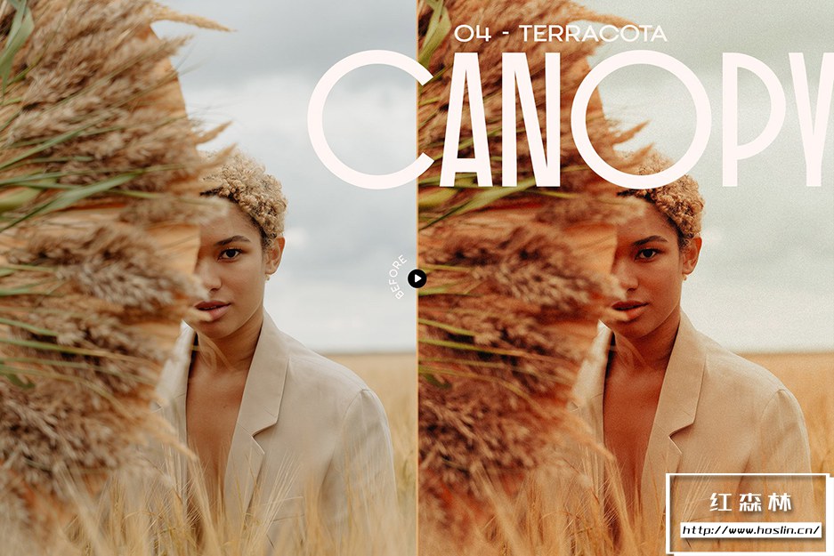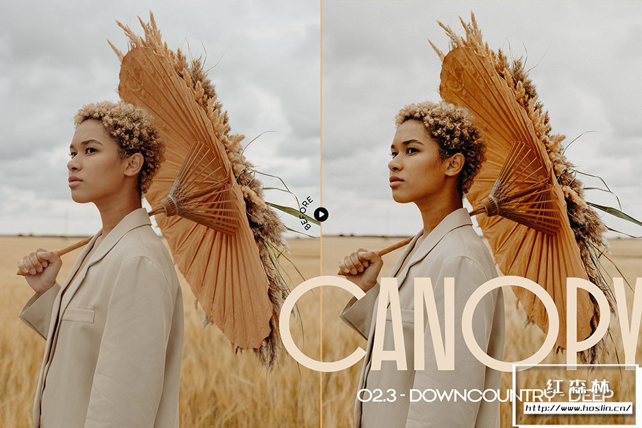 Canopy预设系列具有 12 个泥土色调预设,适用于肖像、美术和时尚编辑摄影。