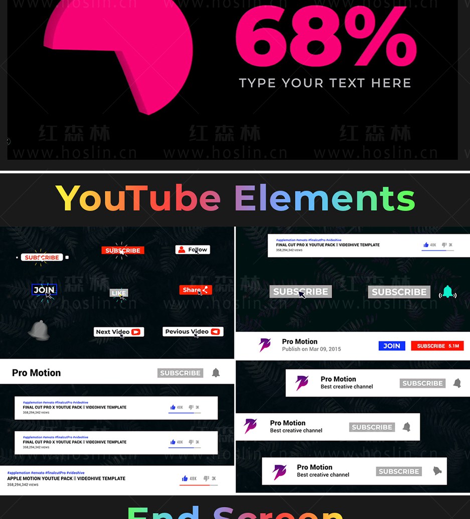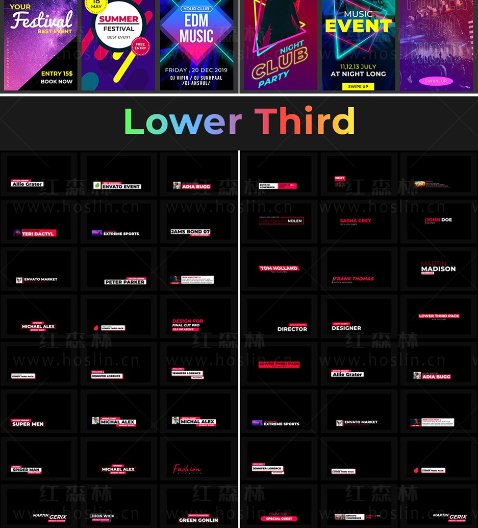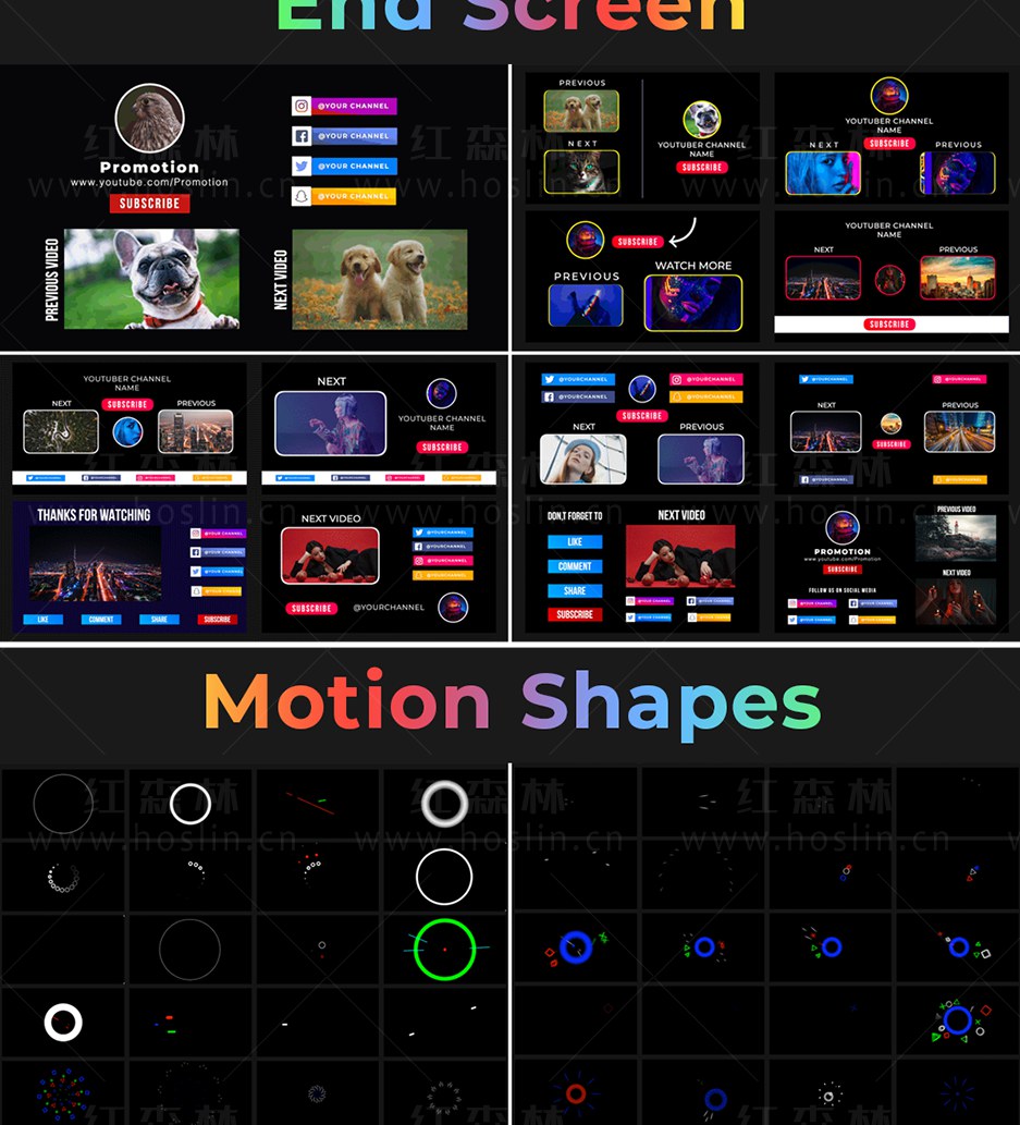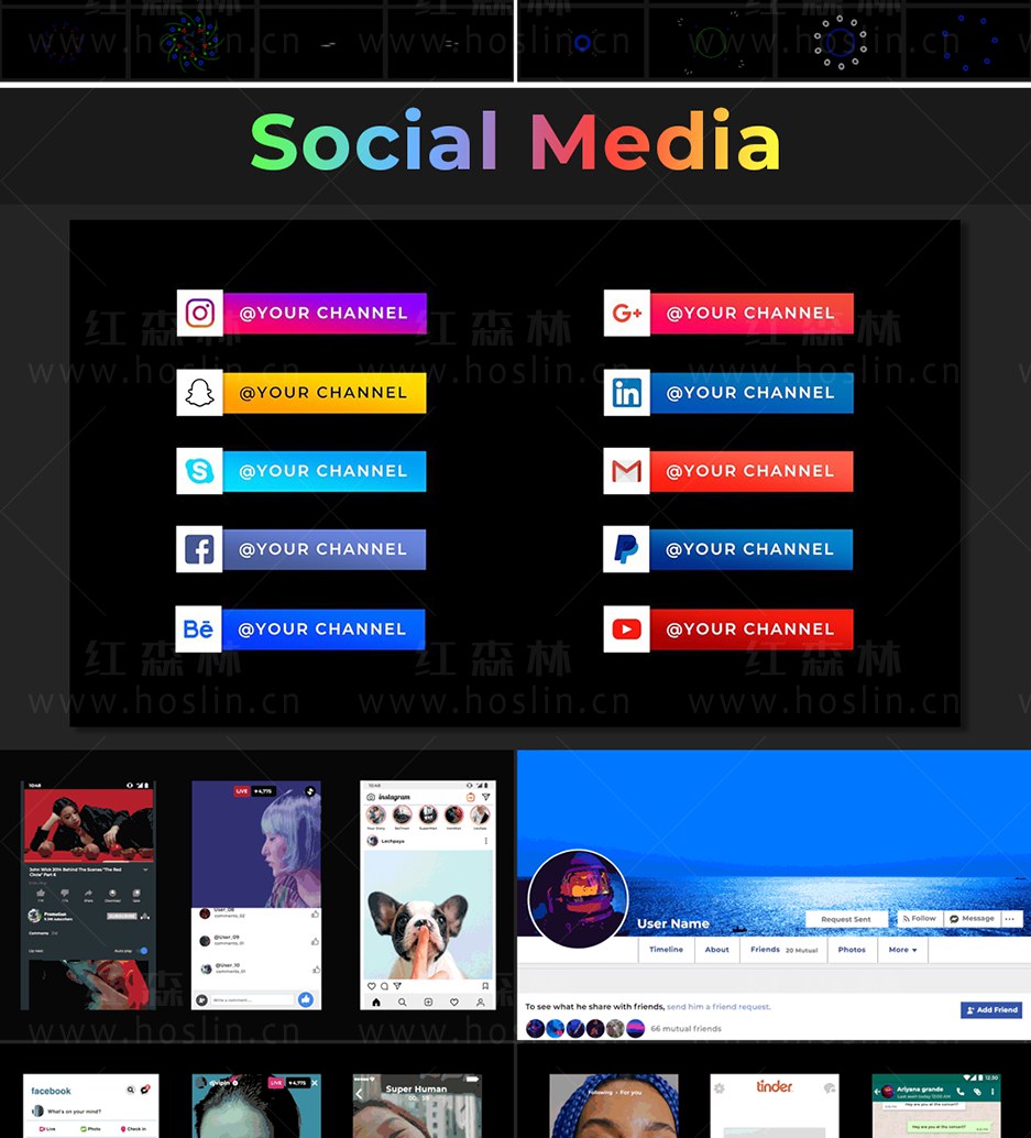 Super Creators Pack 提供超过5000个效果预设元素,如文字标题动画,社交媒体,无缝转场,指示线动画,封面海报设计,图形动画,LUTS调色预设,视觉特效,音效,视频素材等。支持中文输入,可修改大小位置颜色等属性。