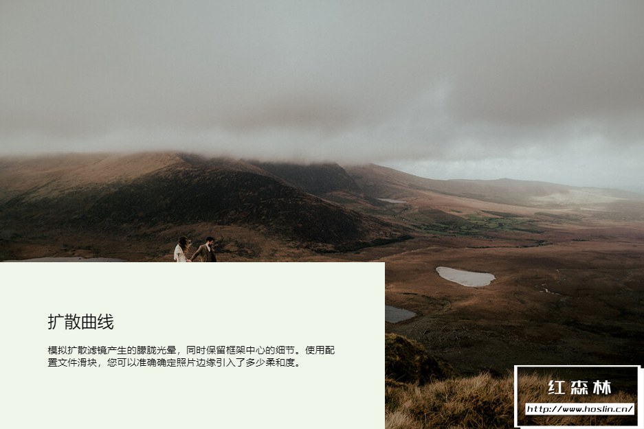 包含的可调节漫射配置文件模拟漫射滤镜中的朦胧发光,同时保留中心细节。