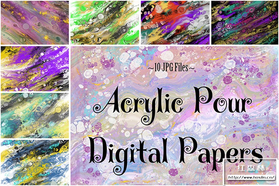 10 张用于 Photoshop、数字剪贴簿和创意艺术的亚克力倒数字纸。