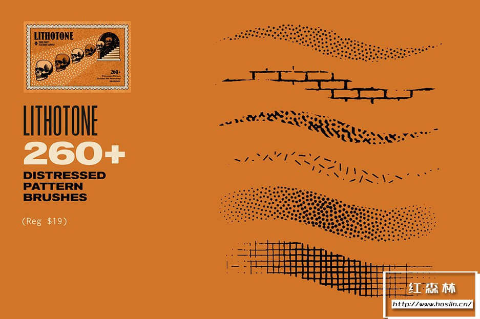 - Lithotone: 260 多种 仿旧图案刷(Reg $19)