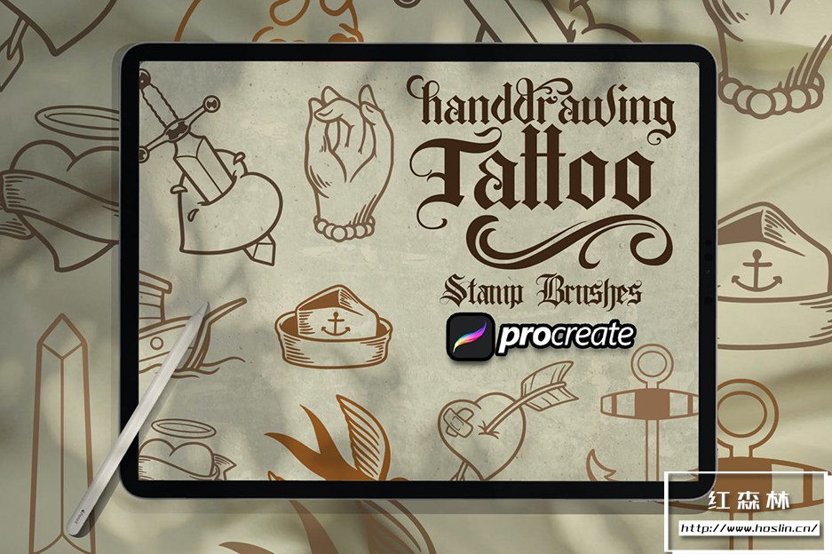 手绘纹身Procreate笔刷 Hand Drawing Tattoos Brush Stamp