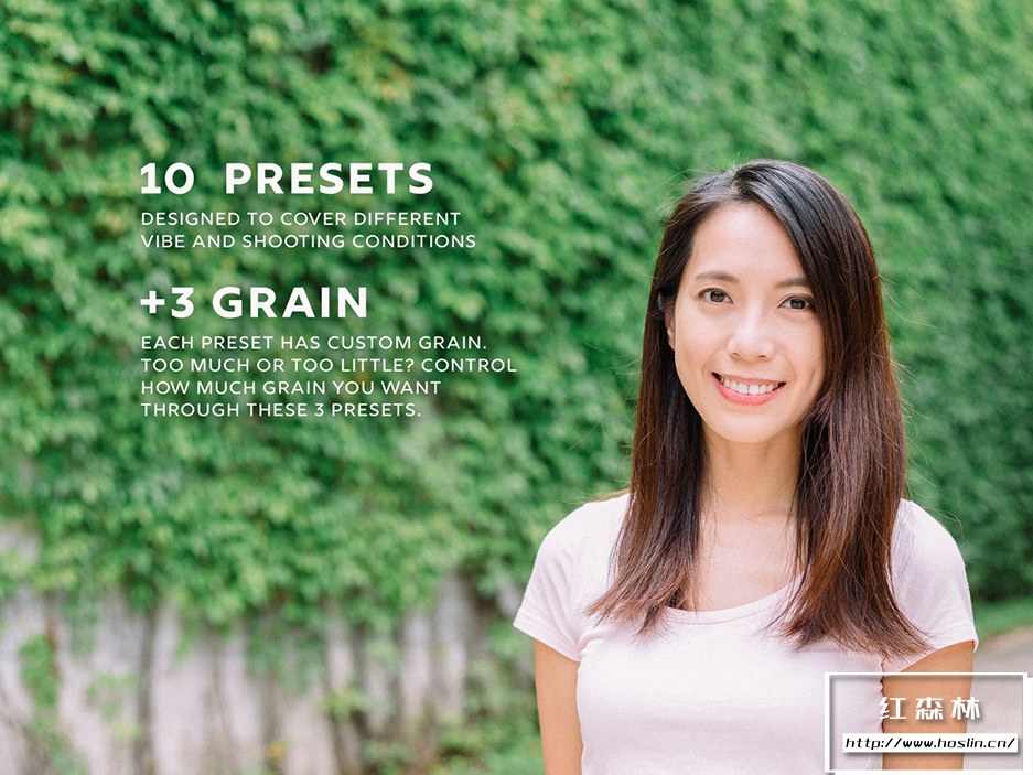 这个包包含 10 种预设变体以及 3 种颗粒设置。适用于台式机和移动设备,35MM胶片模拟。