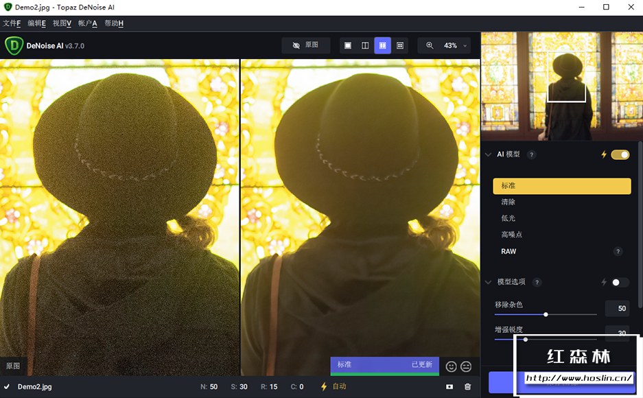 Topaz DeNoise AI v3.7.0 是一款由 TopazLabs 打造的智能磨皮降噪工具,使用首个AI驱动的降噪工具,可以消除噪点并恢复图像中的清晰细节。您可能会对获得的结果感到惊讶。由于数码相机拍出来的相片总会有一些噪点问题,特别是光线不是很好的环境更容易凸显,DeNoise AI可以帮助您创建像素完美的照片,极大的降噪效果就像镜头升级一样。当您拍摄快速动作镜头,夜间图像或任何其他需要高ISO的情况时,您将可以获得更高质量的结果。