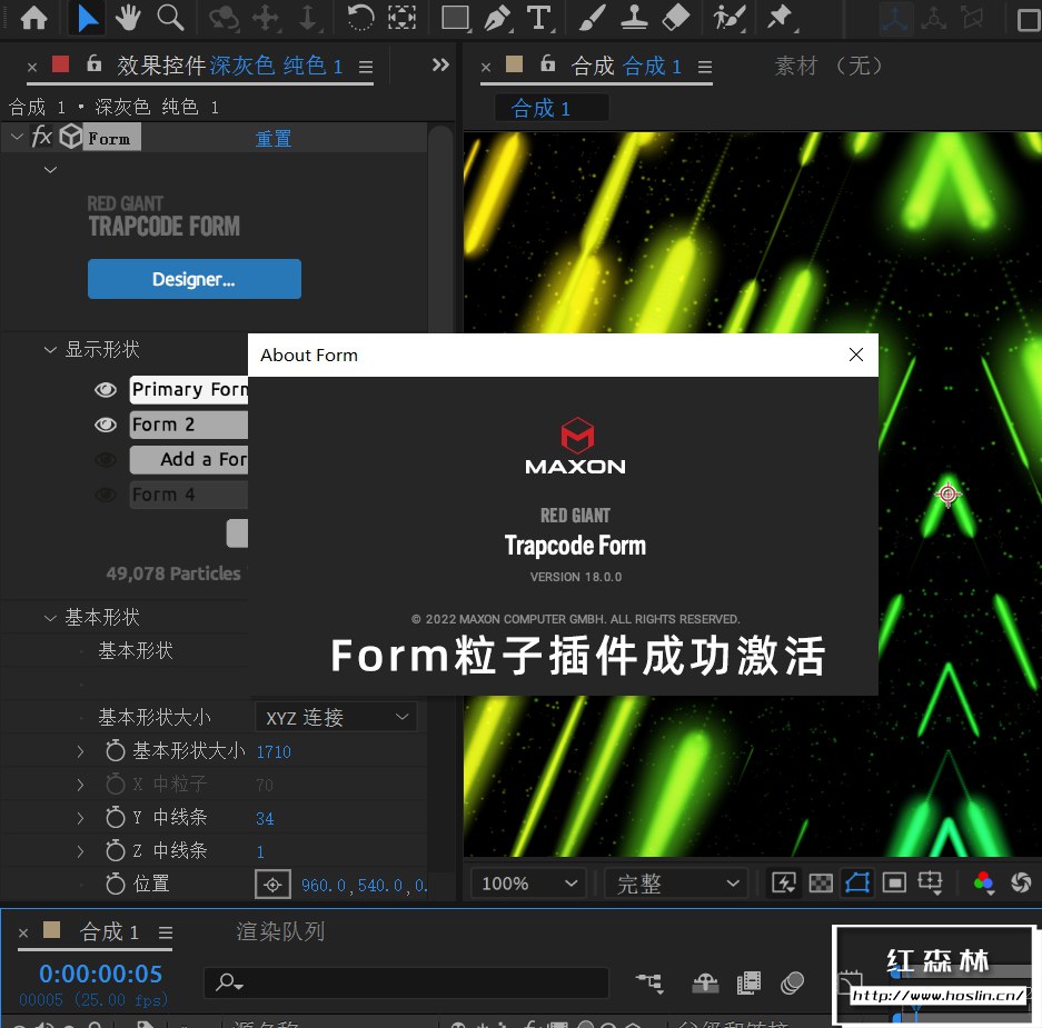 - Form v18.0.0 三维空间粒子插件(支持AE)参数已汉化,预设未汉化,正常使用无红叉水印