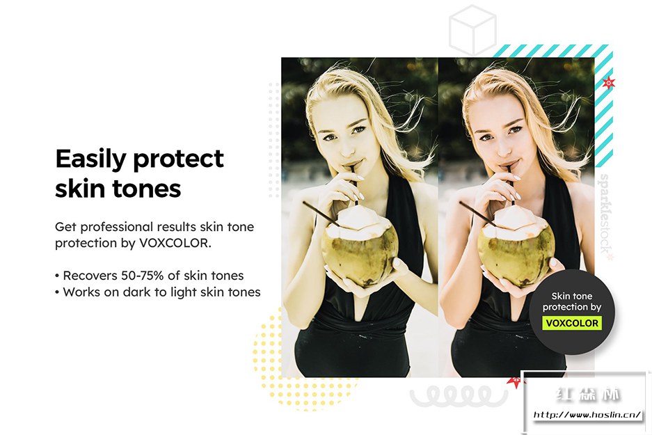 - ✔️ 使用 VOXCOLOR SmoothTones 和肤色保护增强专业效果。