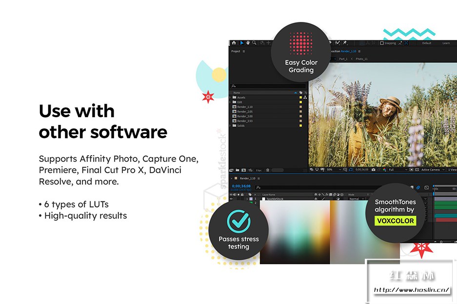 - 适用于 Premiere Pro、After Effects、Final Cut Pro X、DaVinci Resolve、OBS Studio、Spark AR Studio 等的 LUT(3dl、cube、look、png 和 mga)