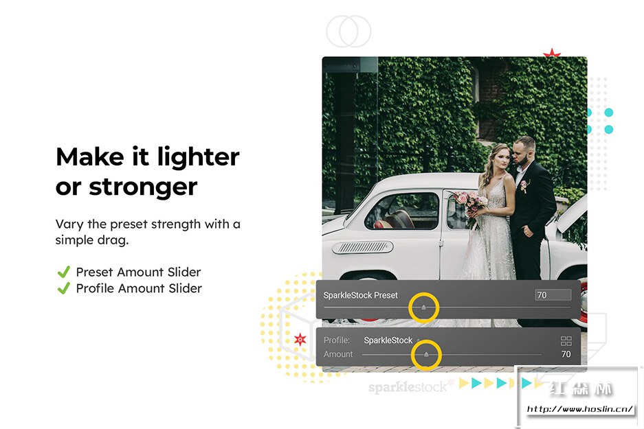这些预设由 SparkleStock 制作,它们按照最佳标准构建,具有肤色保护和支持 Lightroom 数量滑块等功能。当您使用这些兼容的预设时,会出现数量滑块。它可以让您将预设淡化到完美的强度。