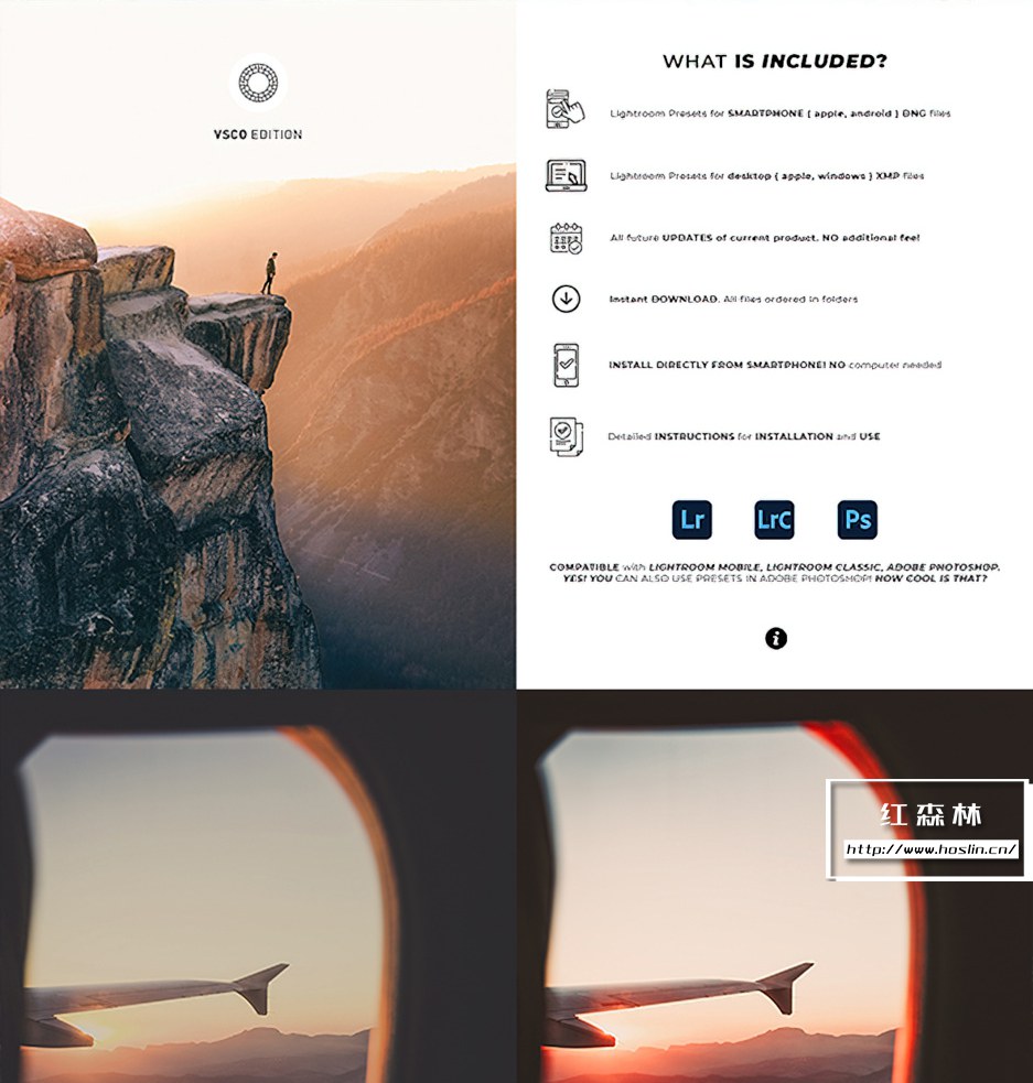 这些很棒的LR预设可以直接从您的智能手机安装和使用(无需计算机),适用于所有版本的 Lightroom 应用程序:免费移动版和 Lightroom 桌面版以及 Adobe Photoshop ACR。