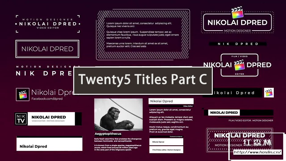 Twenty5 Titles Part C 包含 25 个可自定义的标题、字幕条、文本框和图像框。只需单击几下,即可为它们设置样式以匹配您自己的项目。一种快速简便的方法来增强您的公司演示文稿、商业幻灯片、促销和活动视频的外观和感觉。使用这个快速且富有创意的动画 Final Cut Pro 模板给您的观众留下深刻印象。