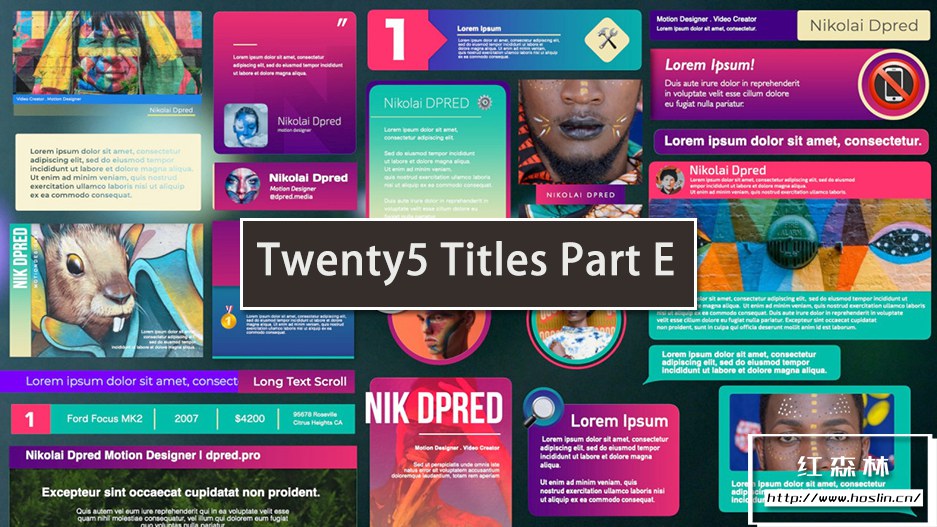 Twenty5 Titles Part E 包含 25 个可自定义的标题、字幕条、文本框和图像框。只需单击几下,即可为它们设置样式以匹配您自己的项目。一种快速简便的方法来增强您的公司演示文稿、商业幻灯片、促销和活动视频的外观和感觉。使用这个快速且富有创意的动画 Final Cut Pro 模板给您的观众留下深刻印象。