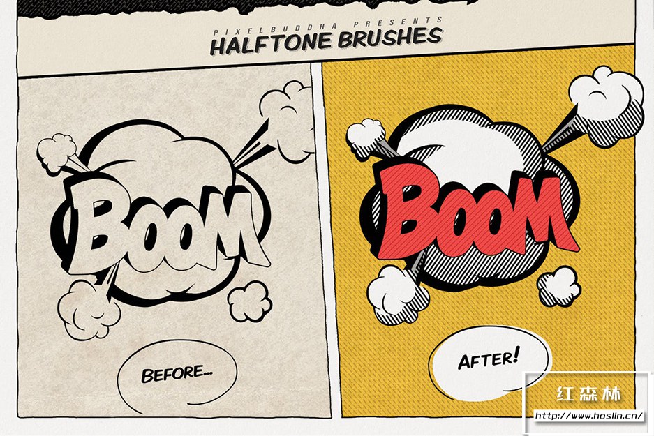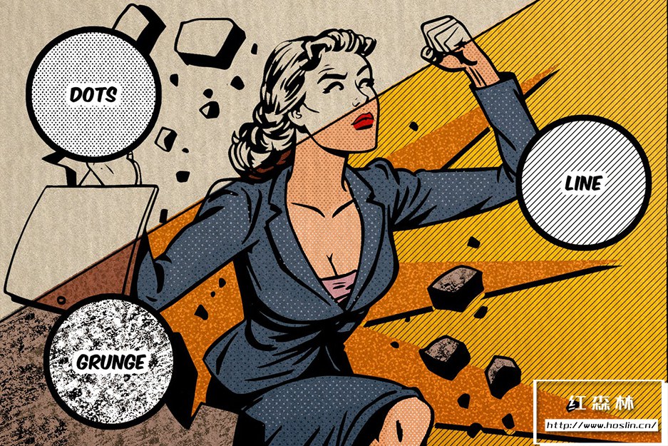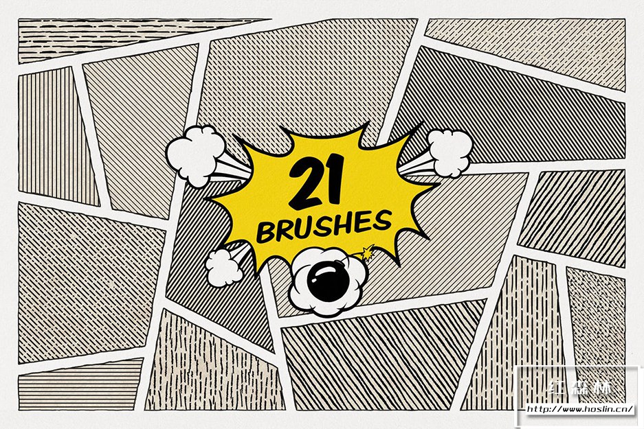 模仿你见过的复古海报的线条阴影:21种不同的线条图案画笔包含大量的插图可能性。还有4 张垃圾纹理的仿旧纸,您可以使用它们来跟上复古漫画风格。它甚至不必是复古艺术品,因为像这样的数字画笔可以用于任何项目,这取决于您的想象力。