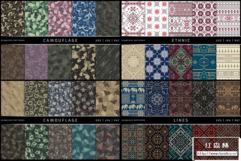 - 矢量 Eps 10 文件 – 可与 Adobe Illustrator 等矢量应用程序一起使用(每个文件中还包含图案样本)