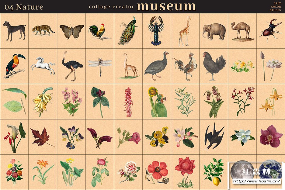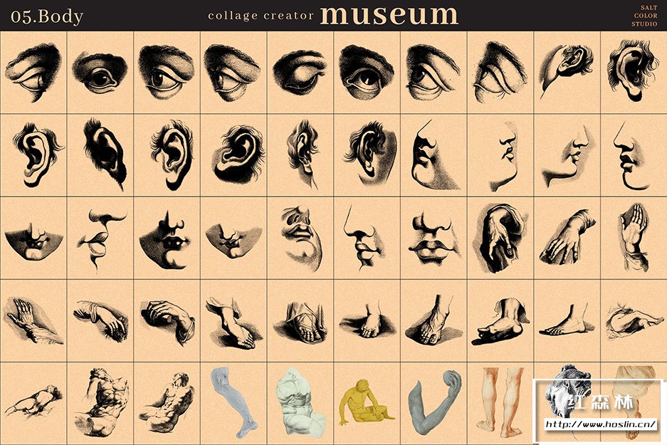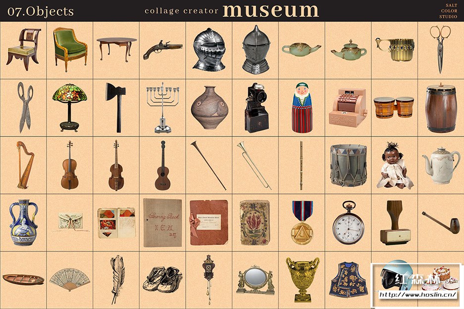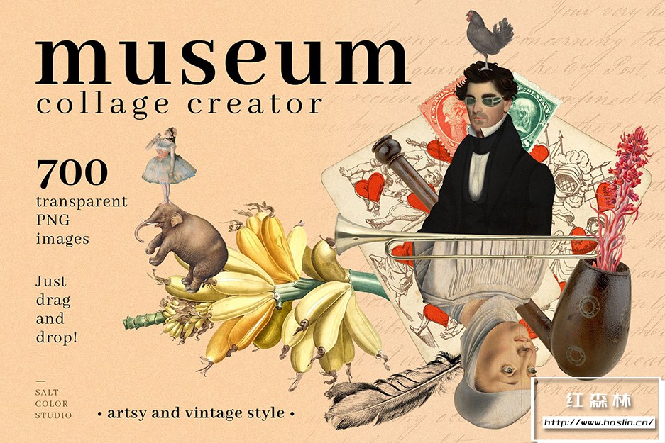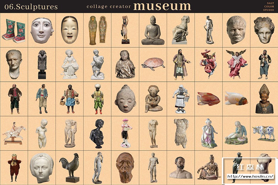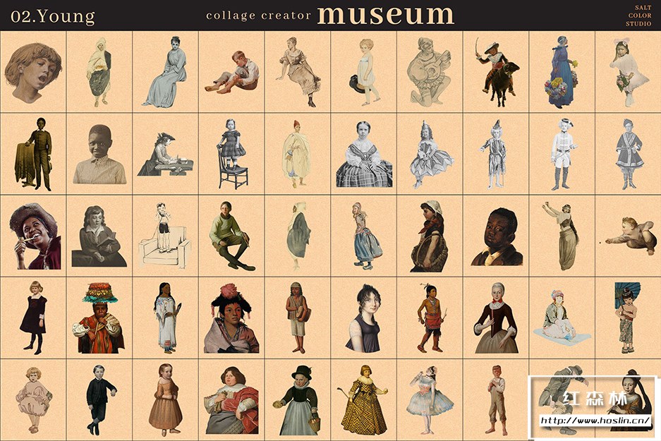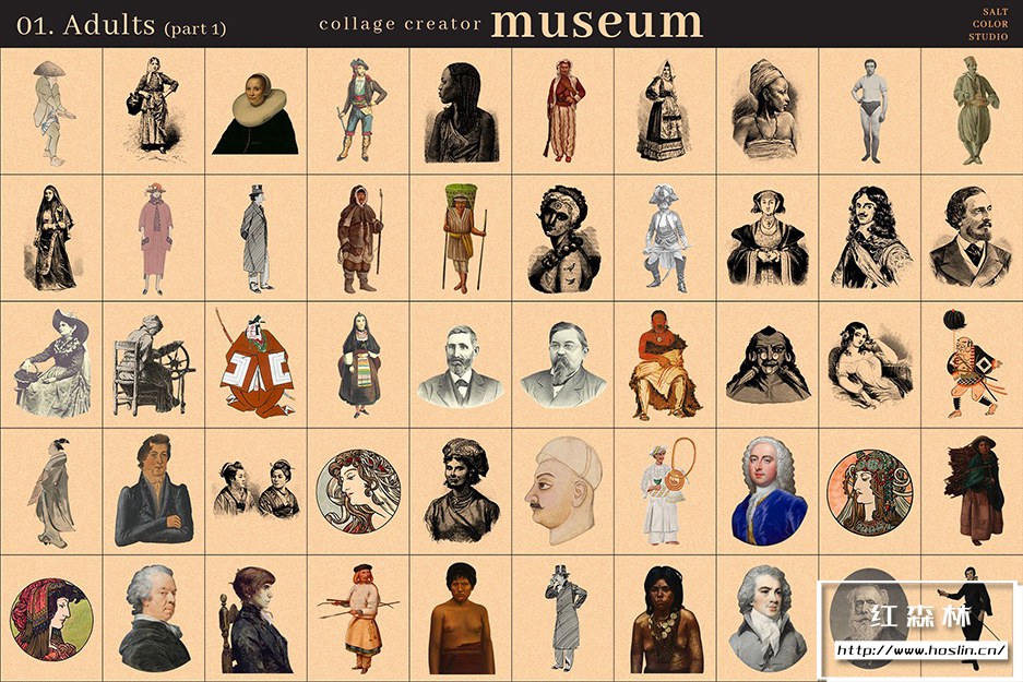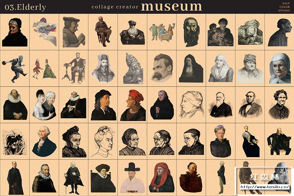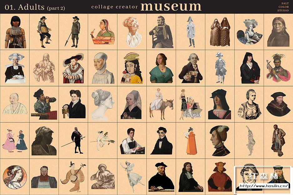 Museum Collage Creator 是我们庞大的 700 个透明 PNG 图像的集合,带有镂空背景,因此您可以快速轻松地创建无尽的拼贴画。