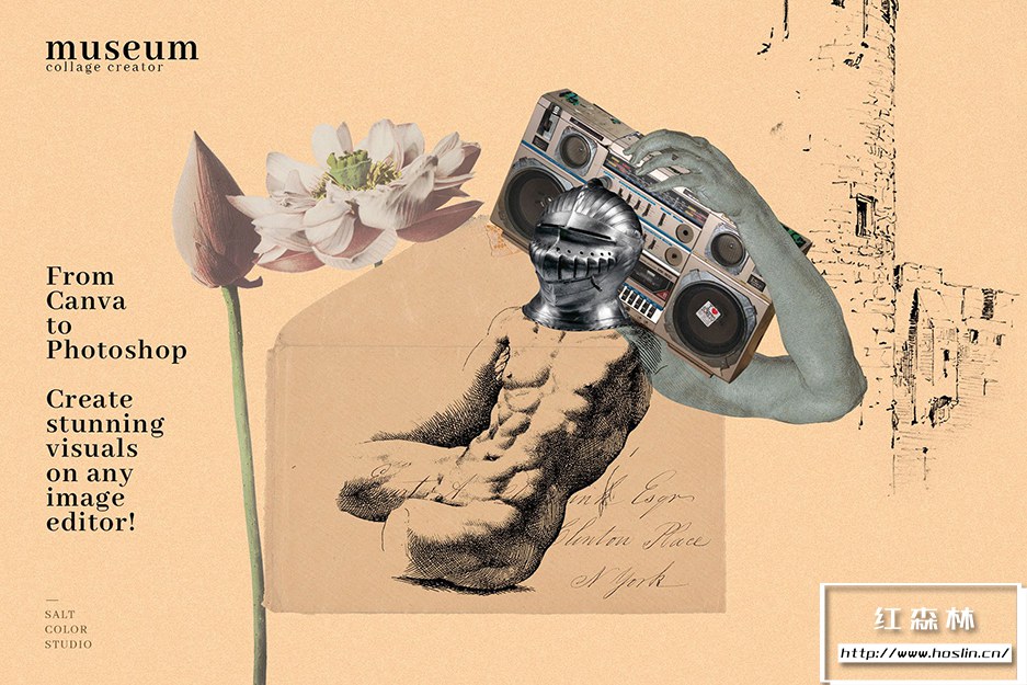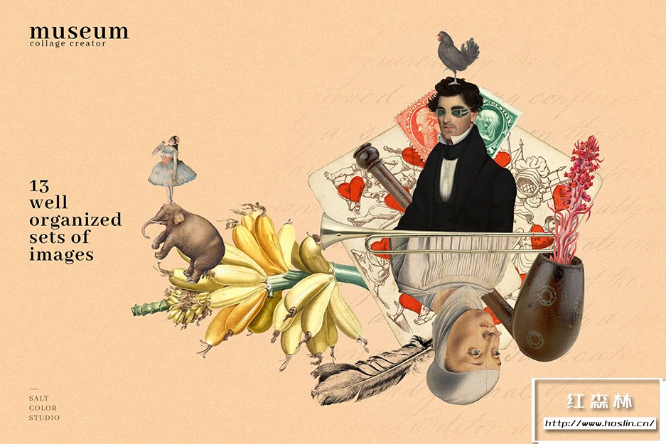 Museum Collage Creator 由具有艺术外观的图像组成,包括绘画、旧照片、插图、复古物品和复古物品。您将能够为一般社交媒体、品牌、艺术印刷品、海报、服装设计、杯子和任何您能想象的东西创建无尽的拼贴组合!