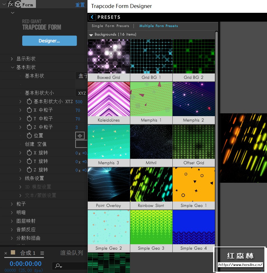 - Form v18.1.0 三维空间粒子插件(支持AE)参数已汉化,预设未汉化,正常使用无红叉水印