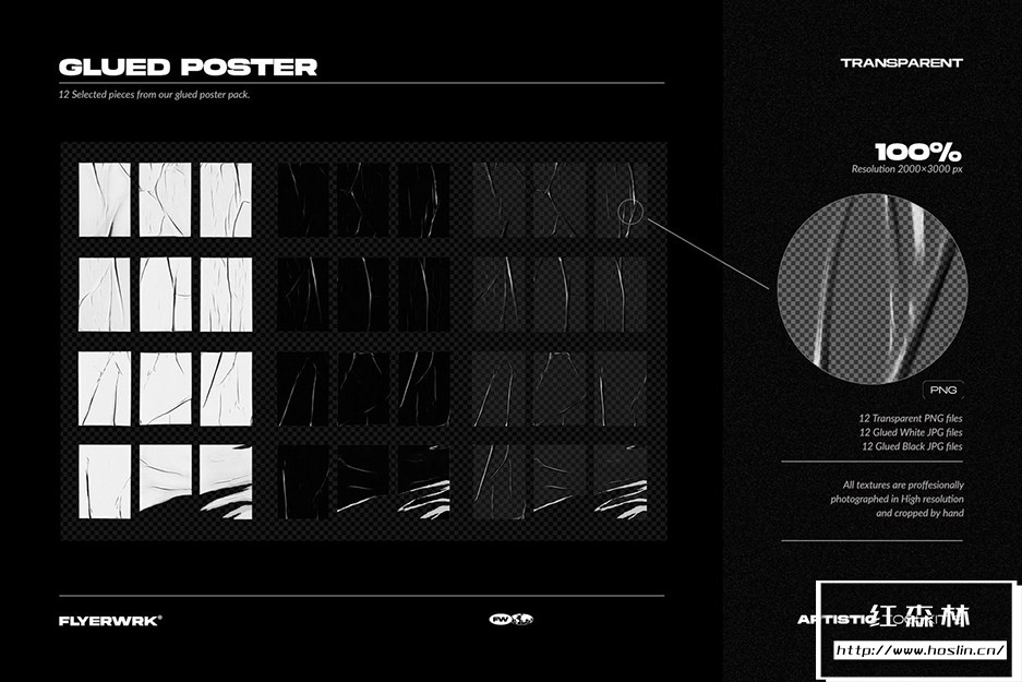第一套:160+ 潮流透明薄膜铝箔塑料贴纸光影褶皱叠加纹理图片PS设计素材 Artistic Toolkit