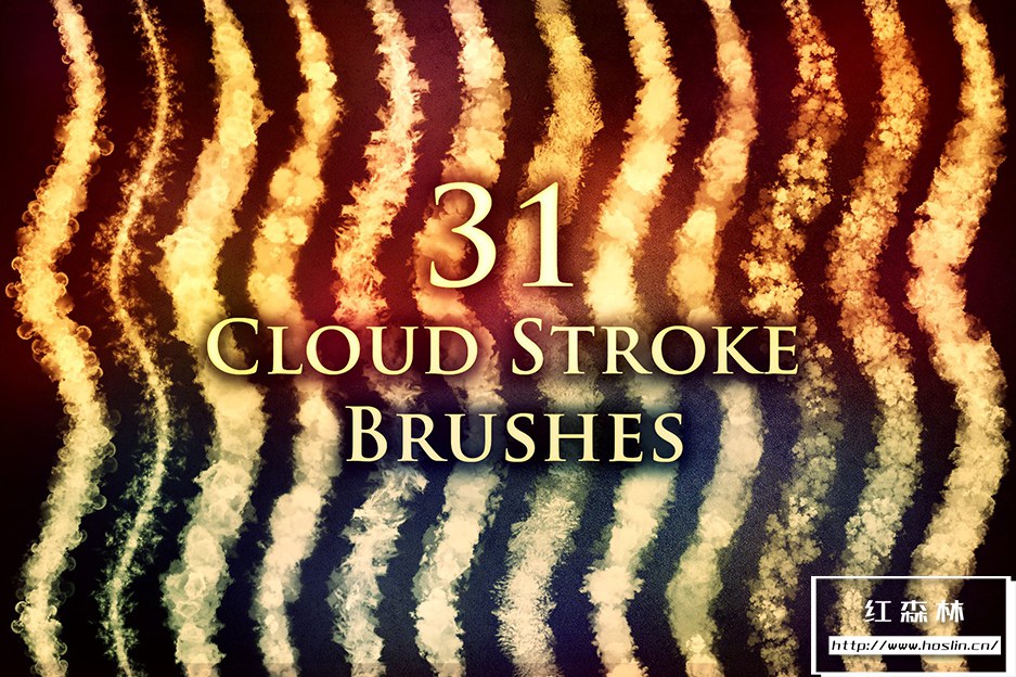 在此产品中,您将找到以下格式的 31 种云笔刷: