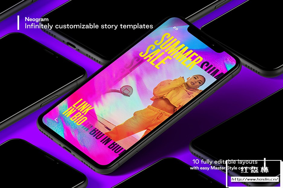 Neogram是一个无限可定制的充满活力的霓虹 Instagram 模板包,带有内置的样式控制器,只需单击一下即可快速漂亮地编辑多个布局。以现代、明亮的方式讲述您的故事。