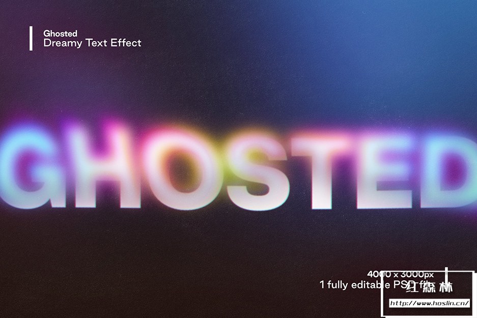 Ghosted是一种简单的一步式文本扭曲效果。此下载包含 1 个 4000×3000 像素的可自定义 PSD模板。