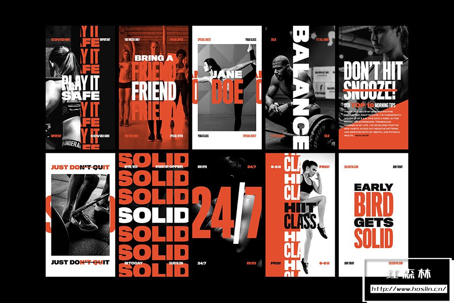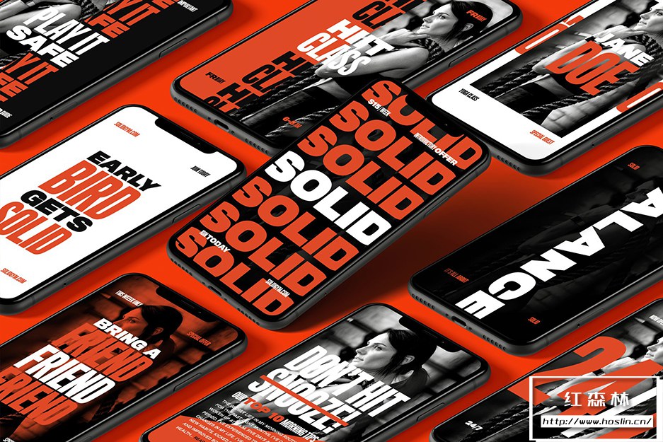 Solid 是一个大胆前卫、高能量的 Instagram 故事模板,专为健身房/健身品牌/服装品牌或外观大胆的初创公司打造。