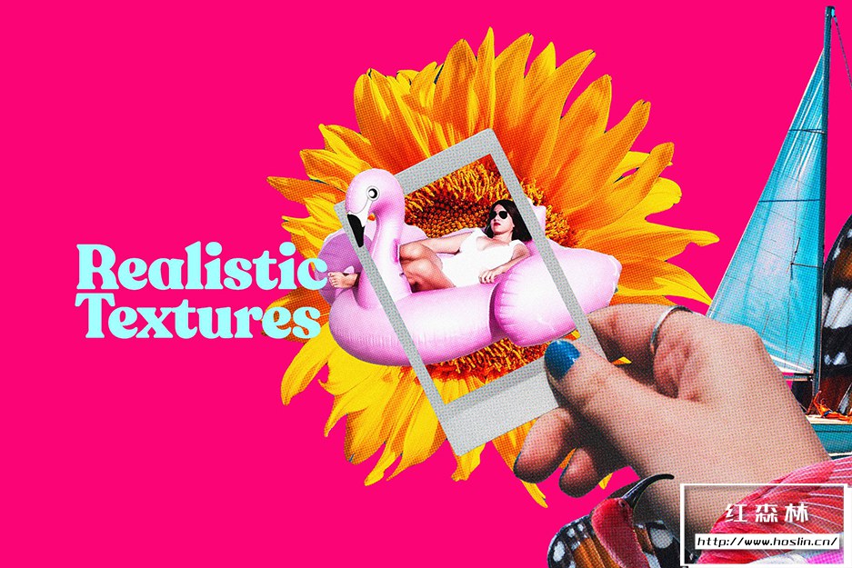 Sunshine 是一包 90 多种高分辨率复古风格夏季独家元素PNG剪贴素材。每个文件都具有逼真的半色调和颗粒效果,适合复古杂志外观。