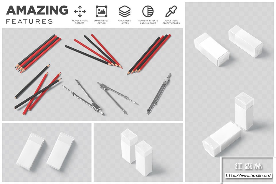 使用铅笔和指南针轻松自定义橡皮擦模型,以展示您的品牌设计。只需将您的设计拖放到智能对象层中并真实展示。您还可以根据自己的选择调整项目的颜色、阴影、效果、背景和位置。