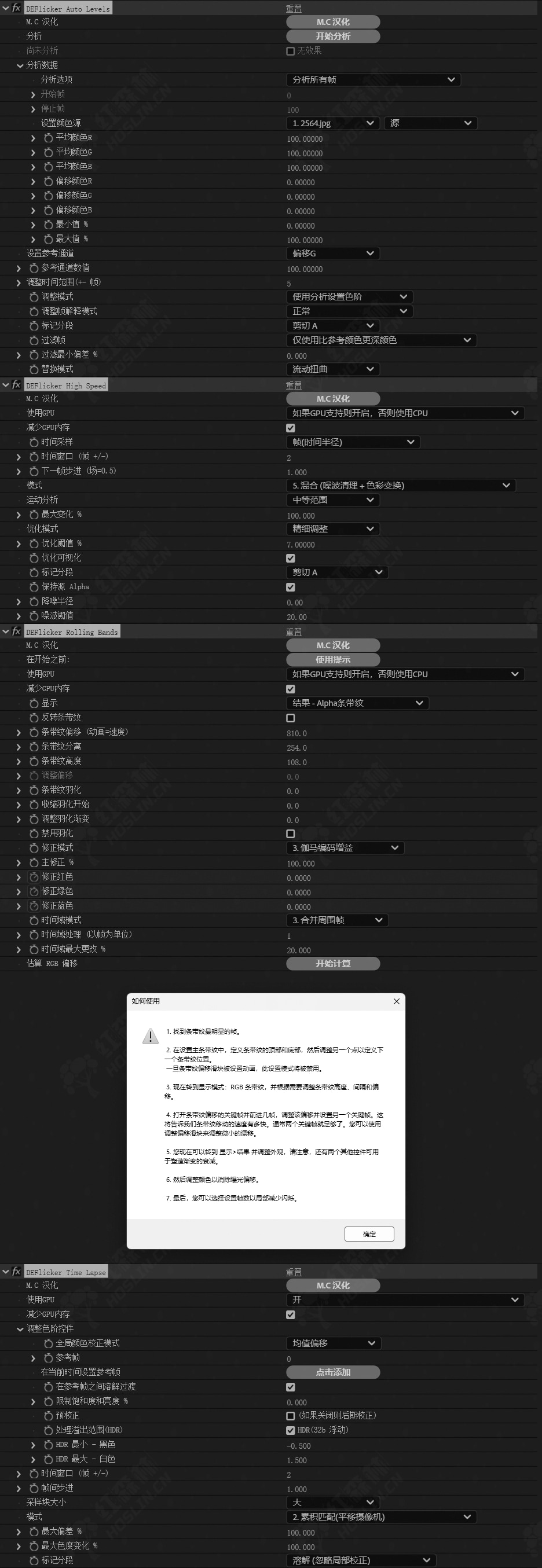 - DE:Flicker Auto Levels(自动去除闪烁插件):分析画面的颜色和亮度,自动去除闪烁