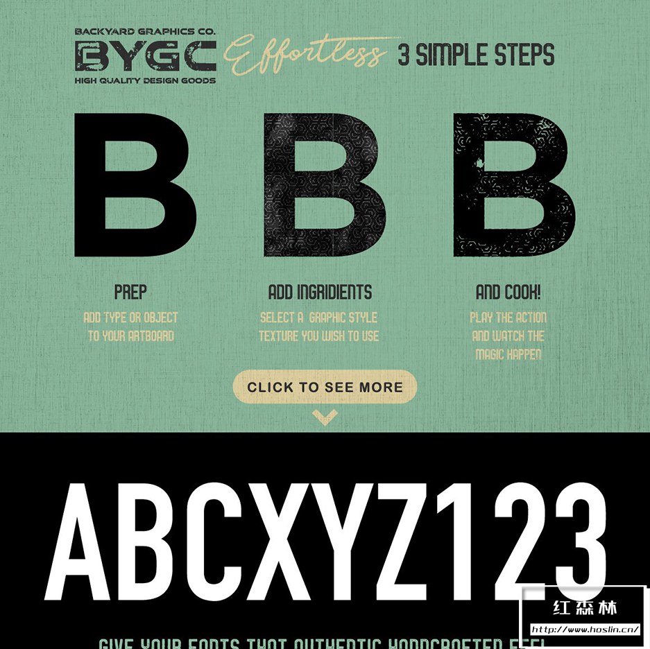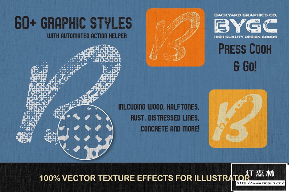 我们超级简单的包装将让您快速启动并运行,并将真实磨损的复古仿旧外观应用于您的类型、徽标或形状。这是一个快速的无痛凸版矢量纹理工具包,上面会写着“哦,我的……这太容易了!”。一系列正宗的后院图形样式和动作,可在几秒钟内为您的作品快速添加纹理效果,给人一种家庭烘焙的凸版感觉。包括一个视觉快速入门指南,让您快速启动并运行并制作出色的字体和徽标纹理效果!