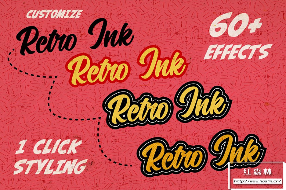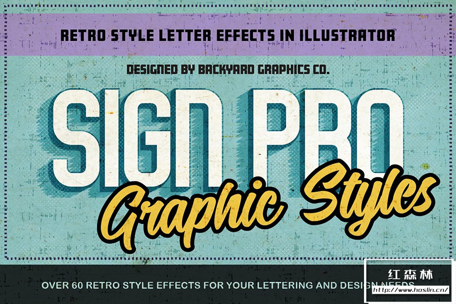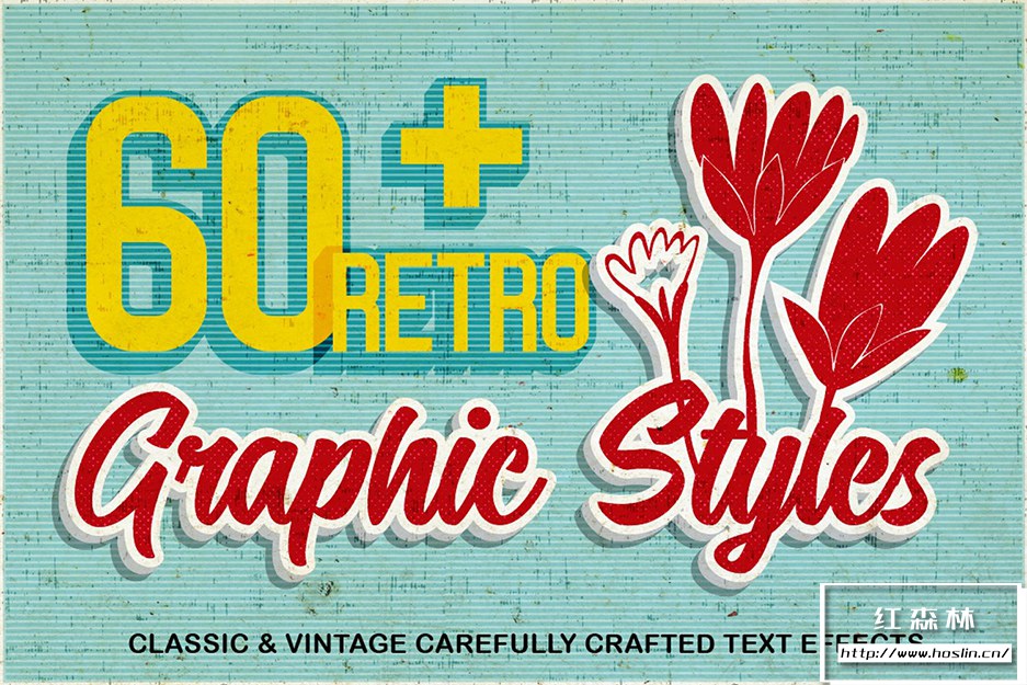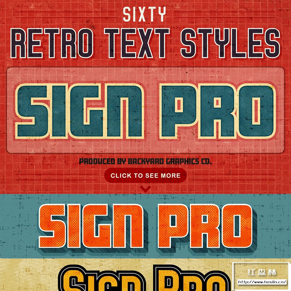 60 多种复古矢量文本图形样式,适用于 Illustrator。