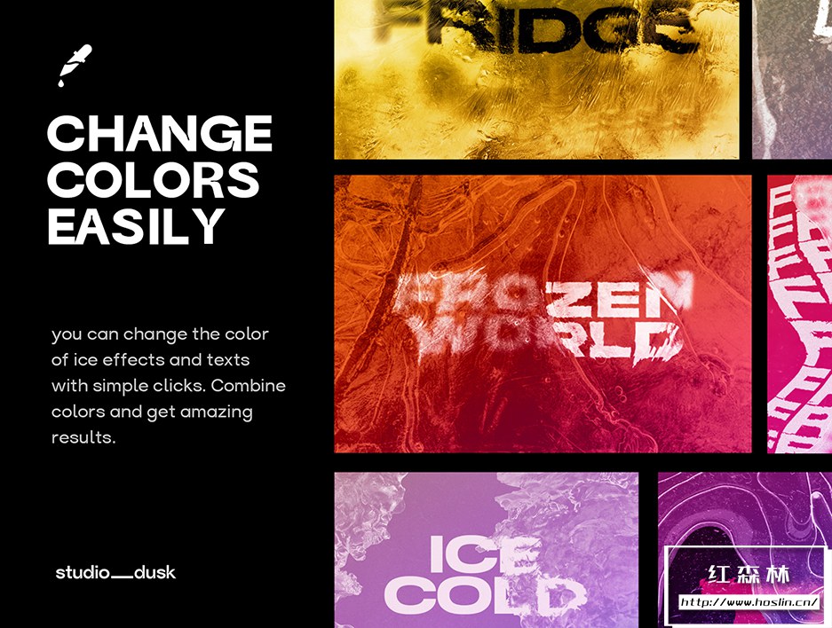 The Fridge Frozen text effects 是 Photoshop CC 的 10 个冻结文本和徽标效果包。只需单击即可替换您的文本、版式或徽标,并在几秒钟内获得惊人的结果。创建精美的海报、音乐专辑艺术、社交媒体帖子、故事、营销横幅、展示模型等。6000 x 4000 像素的高分辨率可在任何屏幕、纸张或产品上显示完美的细节。