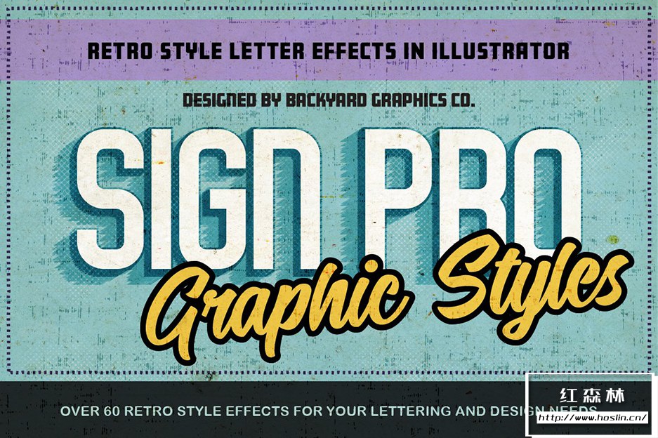 - SignPro Vector Effects – 【AI样式】60种经典简洁复古风格矢量纹理效果Illustrator色板文本样式 Sign Pro – Retro Vector Text Effects