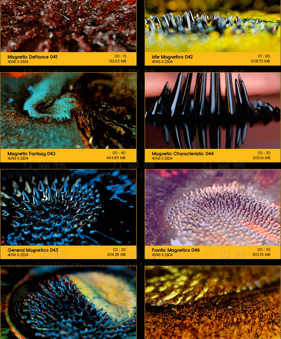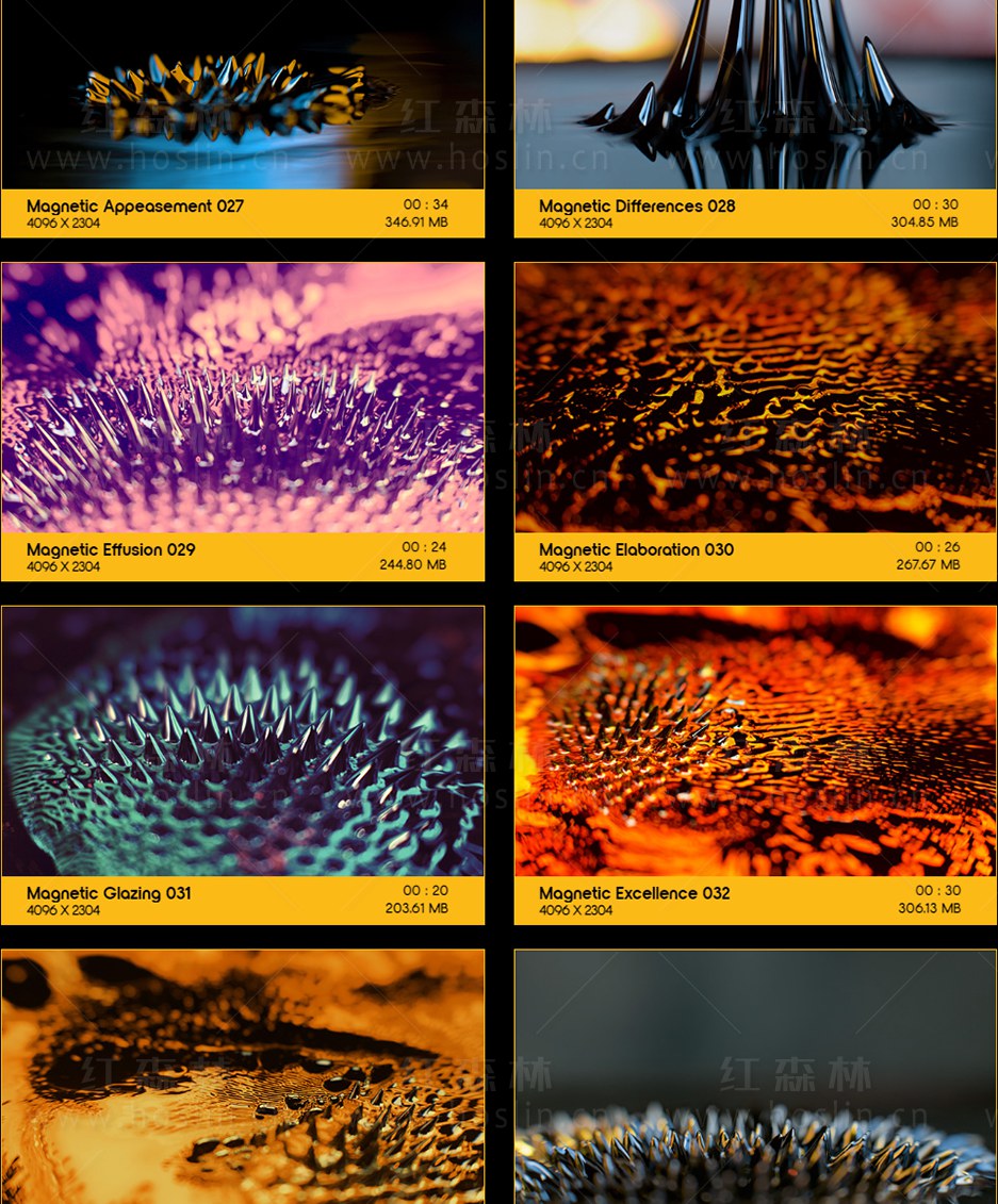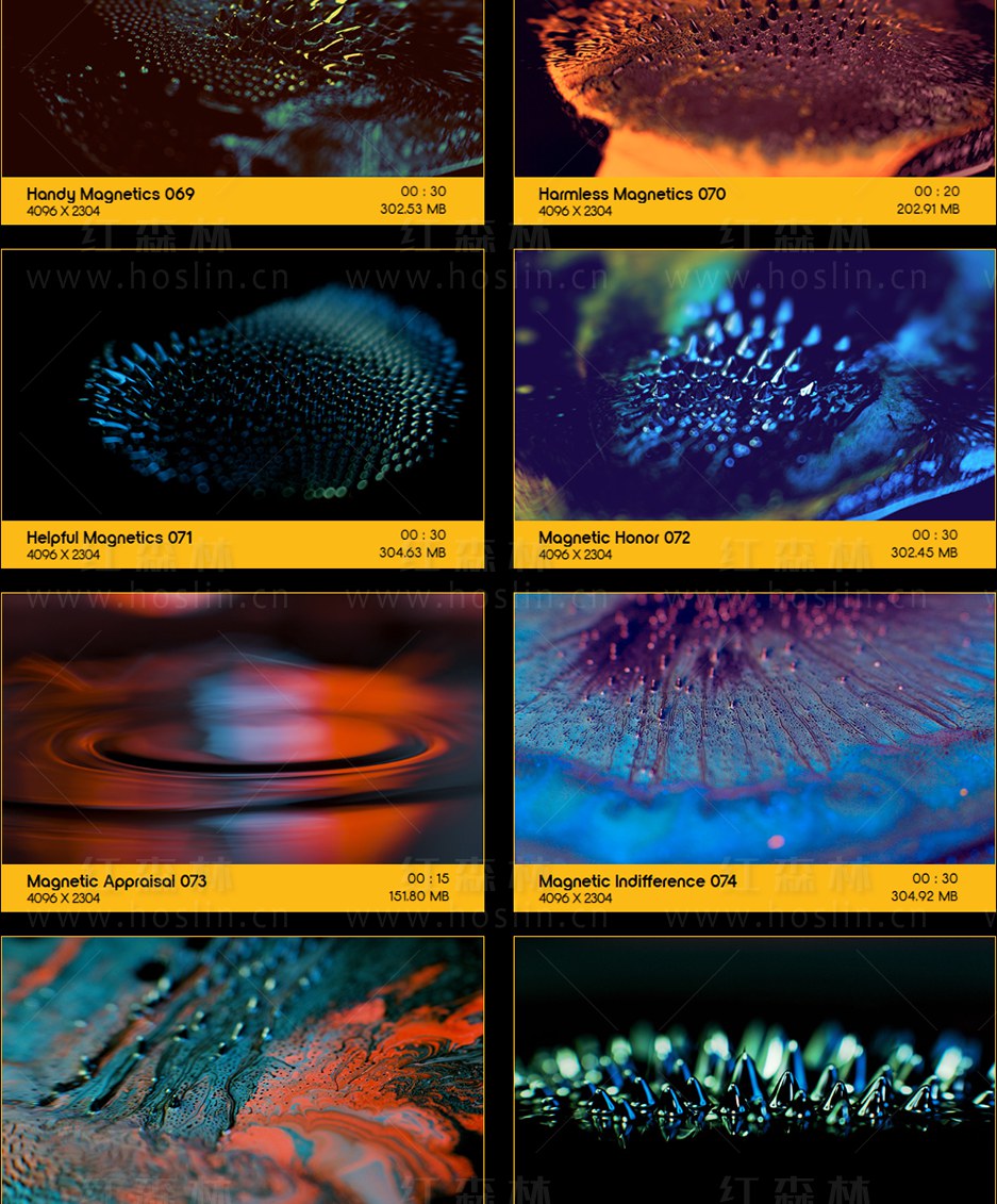 100个磁流体力学微观特写抽象背景4K合成动画,非常适合用作视频特效或背景。在 Phantom Flex 上以高达1000 FPS的速度拍摄,虚幻的新风格,令人惊叹的相机角度、高端品质和无数用途。动态的抽象形态,使用这些剪辑为您的项目添加独特的魅力。这100个超慢动作4K剪辑将让您为您的图像和视频剪辑添加抽象的兴趣。分辨率:4096*2304,4K高清;无透明通道(可修改混合模式去黑底透明叠加使用)。