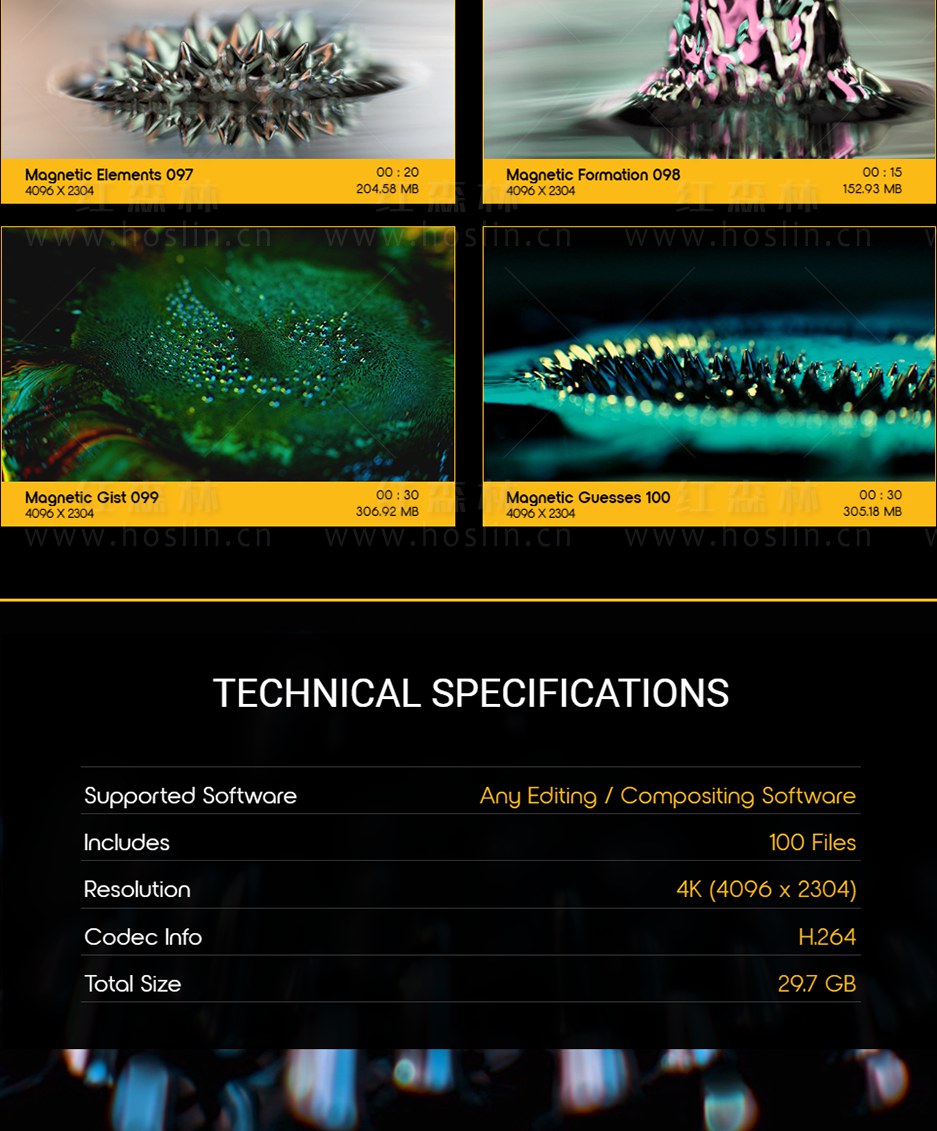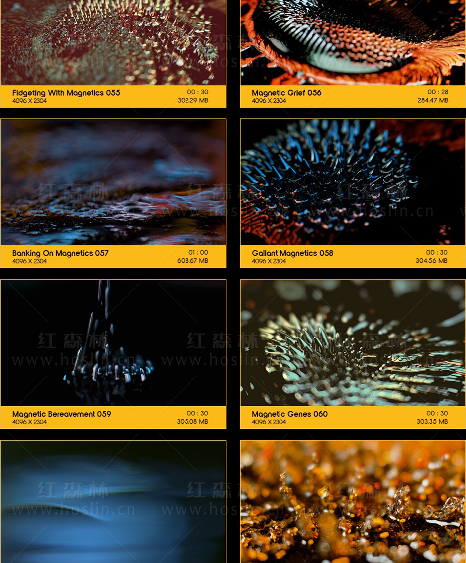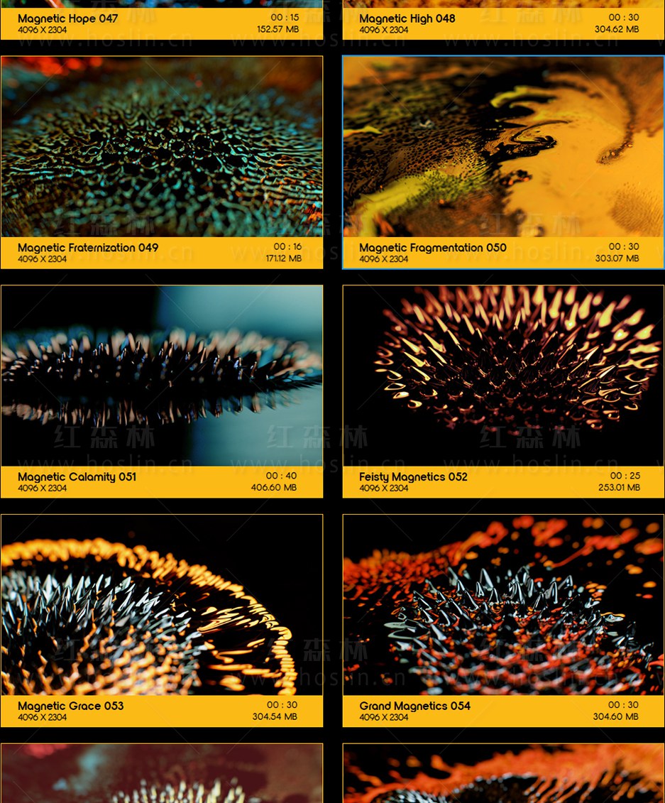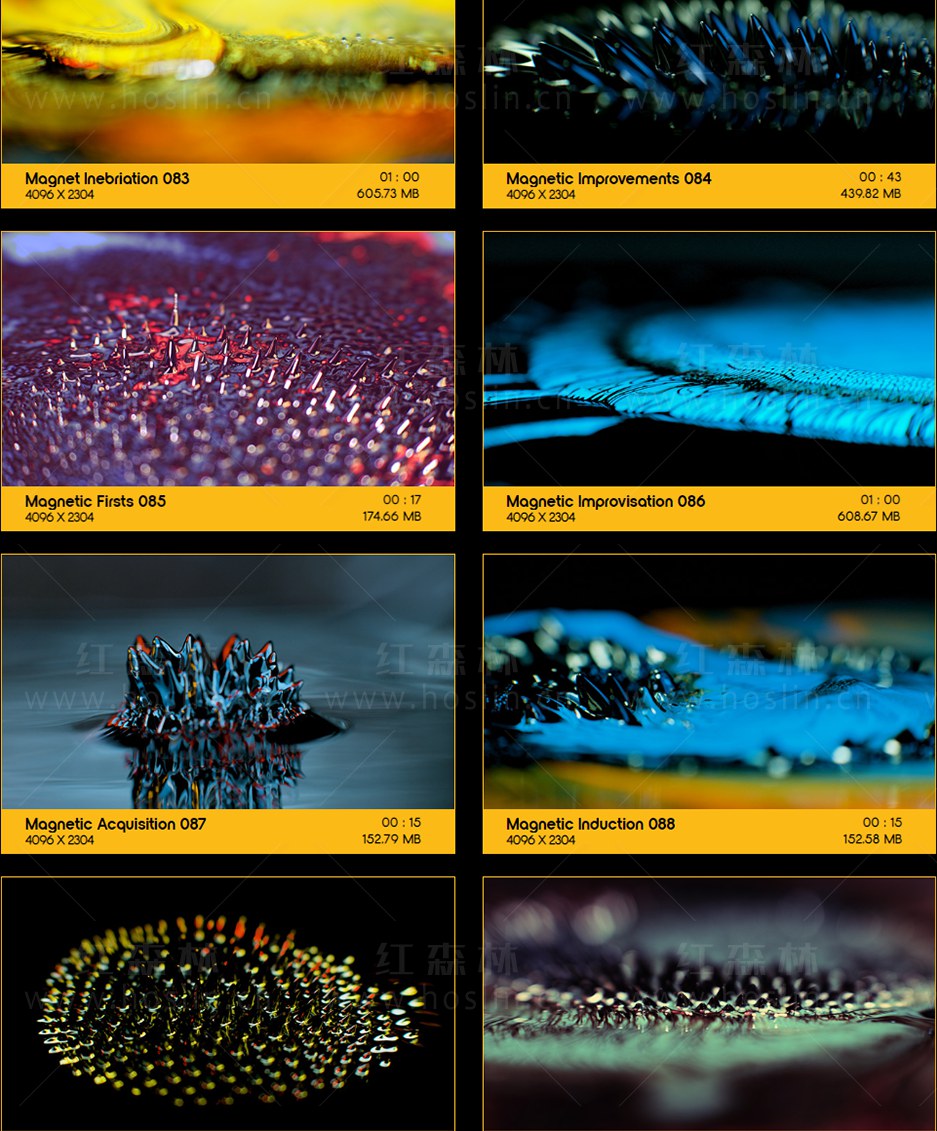 100个磁流体力学微观特写抽象背景4K合成动画,非常适合用作视频特效或背景。在 Phantom Flex 上以高达1000 FPS的速度拍摄,虚幻的新风格,令人惊叹的相机角度、高端品质和无数用途。动态的抽象形态,使用这些剪辑为您的项目添加独特的魅力。这100个超慢动作4K剪辑将让您为您的图像和视频剪辑添加抽象的兴趣。分辨率:4096*2304,4K高清;无透明通道(可修改混合模式去黑底透明叠加使用)。