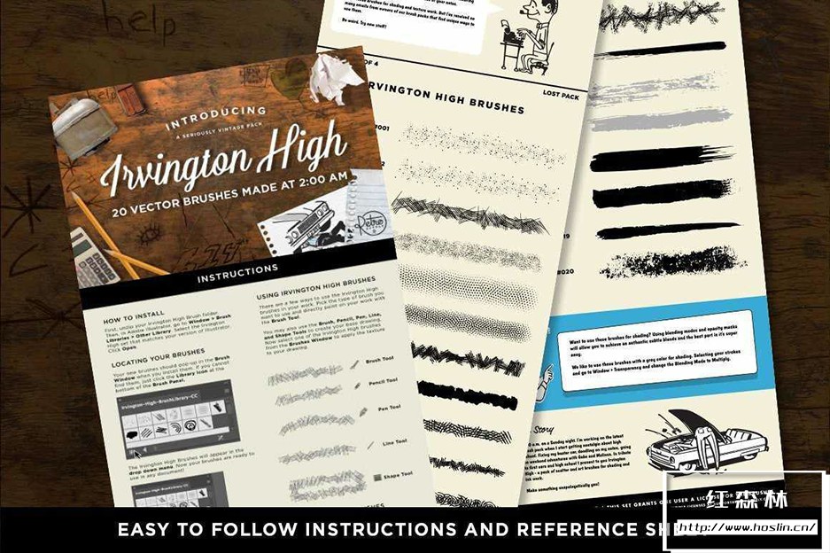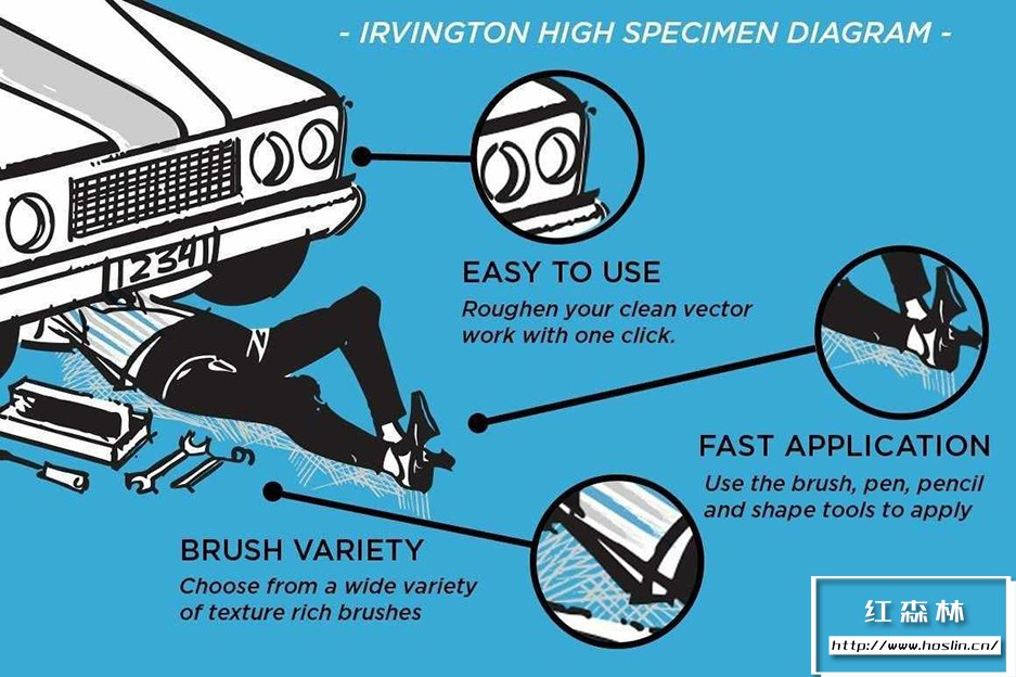 关于产品: Irvington High Vector Brushes,为插画家和设计师准备的一组奇怪而实用的插画笔刷。