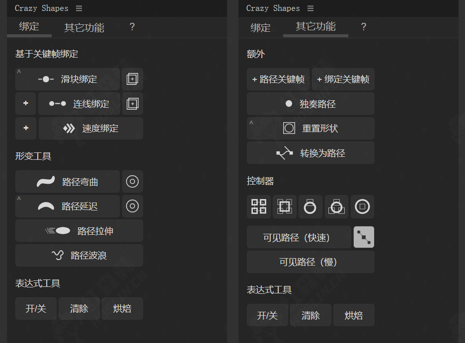 - 一键将所有参数形状转换为路径,或将所有表达式转换为关键帧。
