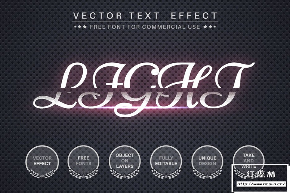 插图中使用的免费商业字体。阅读文档中有关字体以了解更多信息。阅读Manual_vector_text_effect.pdf和Manual_vector_effect_to_logo.pdf学习如何使用文本效果。