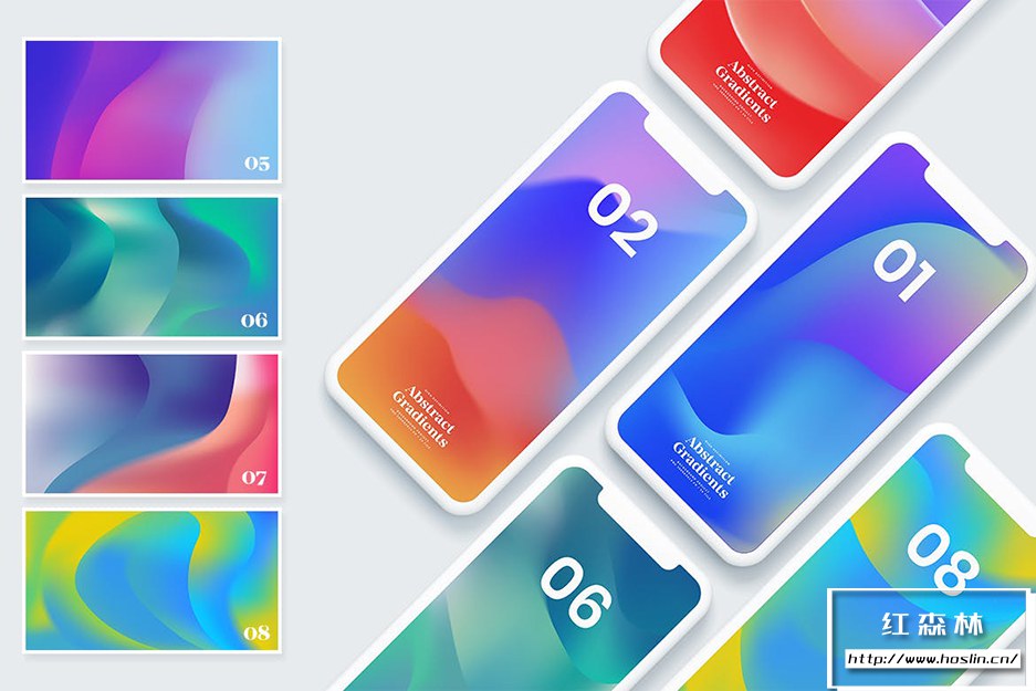 抽象矢量渐变背景,适合各种设计,品牌,展示的背景纹理。包括: