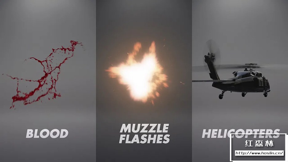 特别说明:此素材提供的是枪战元素特效,没有预览视频中的实拍人物风景文字图片等素材,也没有AE模板工程。