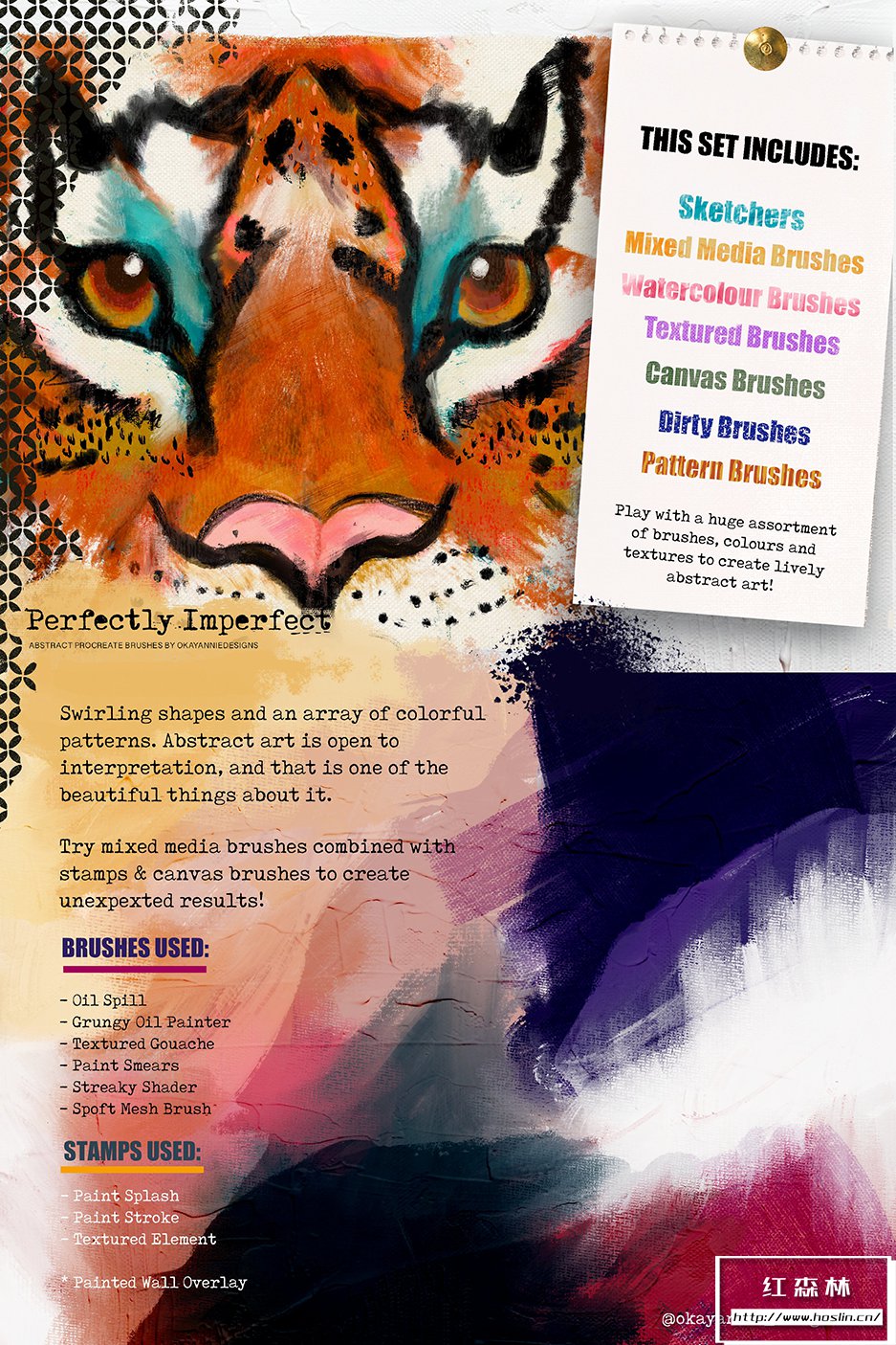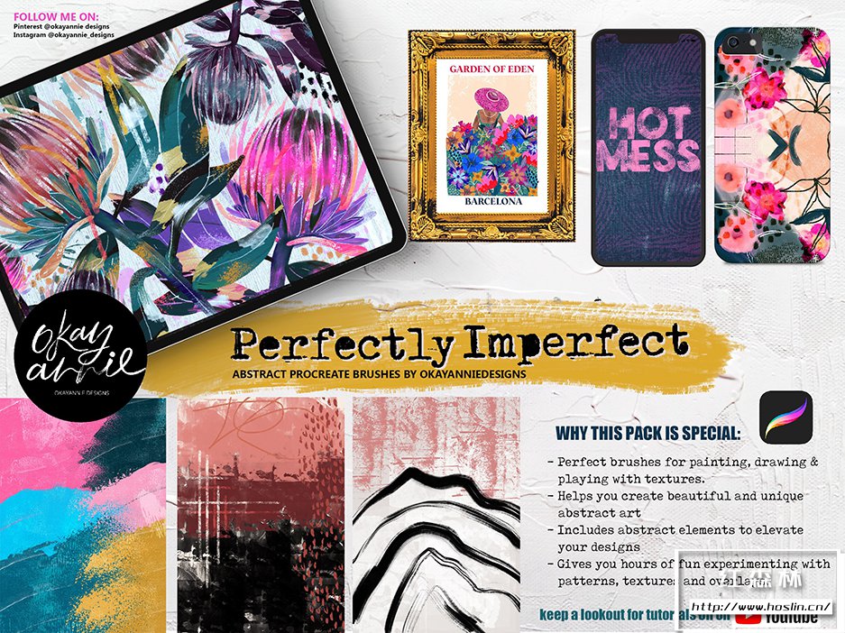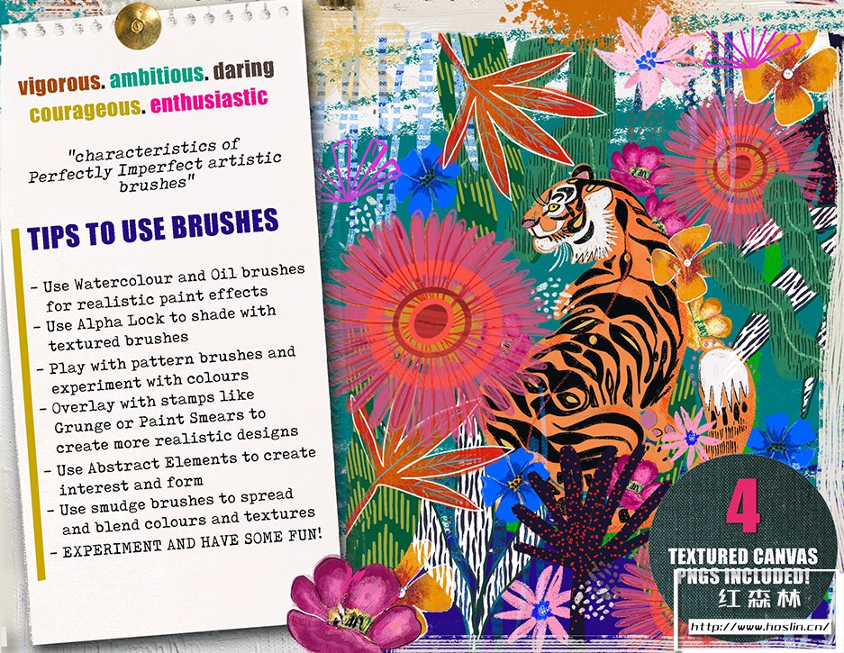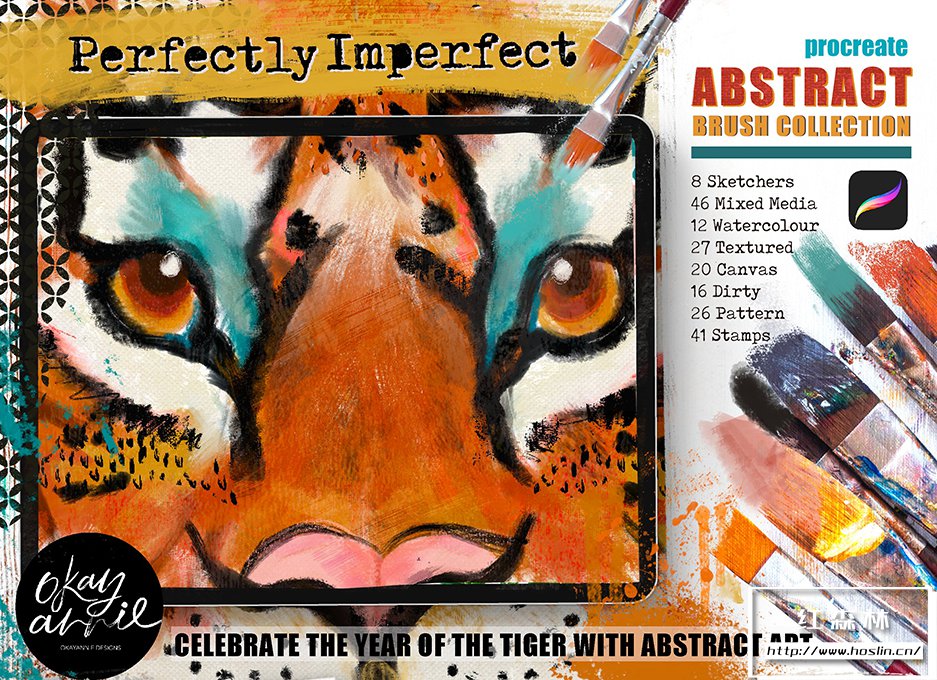 Procreate 的绝妙抽象画笔系列!精力充沛。野心。大胆。勇敢。热情的“完美不完美艺术画笔的特点”