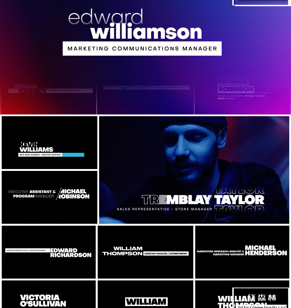 100种时尚简洁文字标题字幕条动画 100 Lower Thirds,独特的动画,您可以控制动画的持续时间(intro – outro)兼容 4K 和全高清分辨率视频(分辨率大小可以轻松更改)。包含快速预览 html 库(更快地浏览 100 个字幕条)文本/徽标、颜色和持续时间控制(完全控制),支持中文输入,包含视频教程。