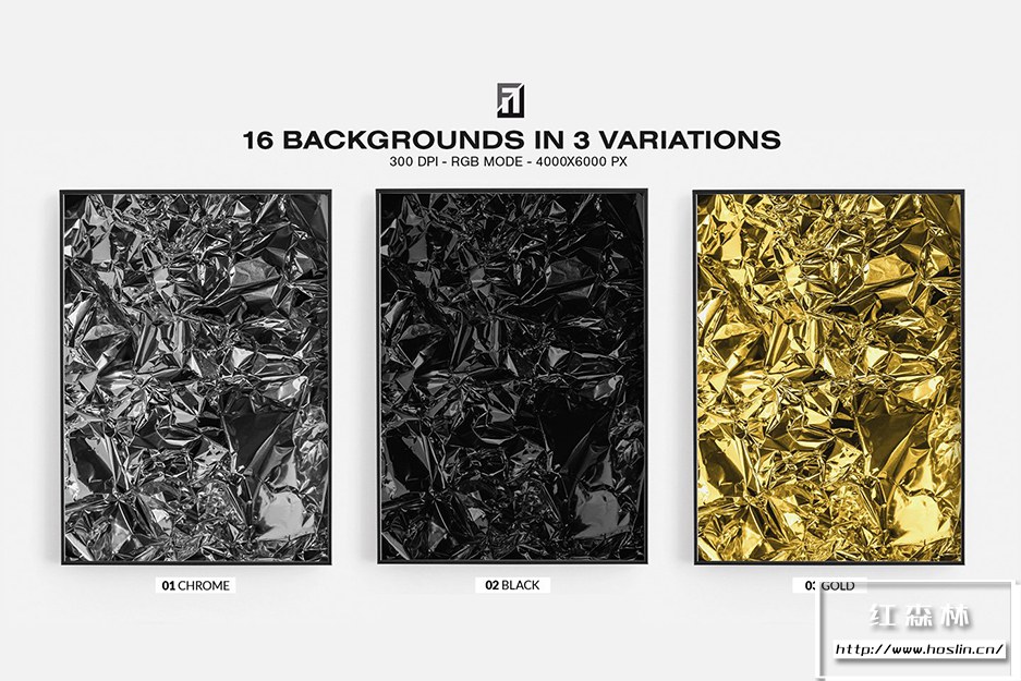 - 16 个背景 .JPG 文件,3 种颜色变化(铬色、黑色和金色)