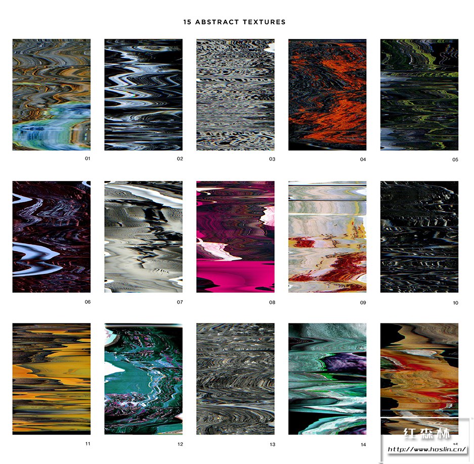 我最喜欢的抽象纹理系列之一。这套包含15 个极高分辨率的文件。每个大型文件的尺寸为 7000×10000 像素,300 dpi,为您提供了使用此集合的很大灵活性。这个包探索了数字反馈和视觉失真。这些多功能纹理非常适合与音乐相关的项目、包装、纺织品设计、海报和排版。