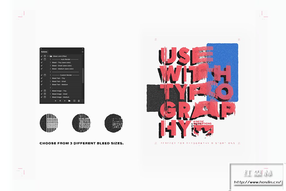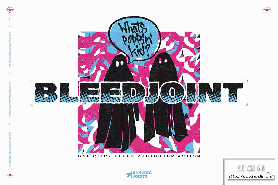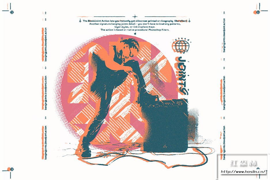 BleedJoint Action 可让您立即获得丝网印刷或类似 Risograph 的效果!它带有重复渲染功能:一遍又一遍地播放动作以扩大出血效果。